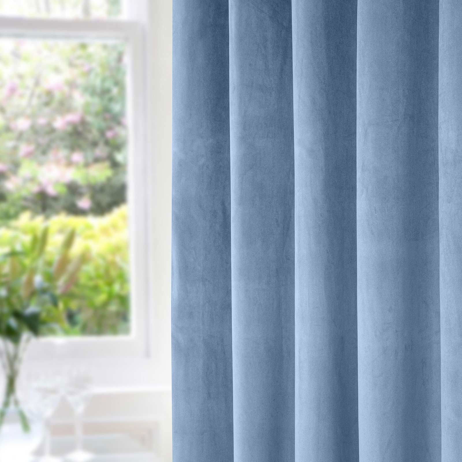 Homescapes Rideaux occultants en velours à oeillets Bleu clair, 117 x 183 cm