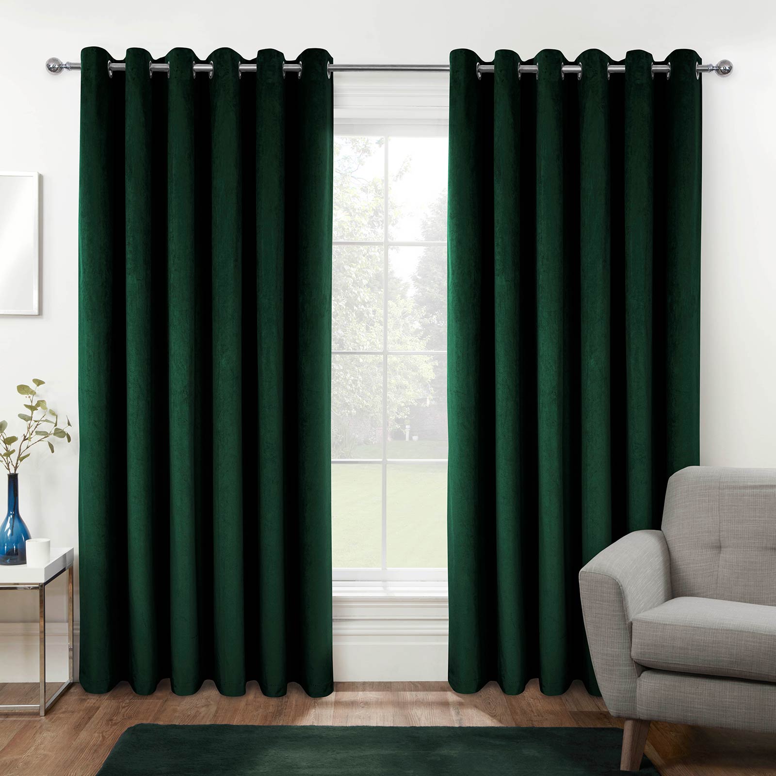 Homescapes Rideaux occultants en velours à oeillets Vert foncé, 168 x 229 cm