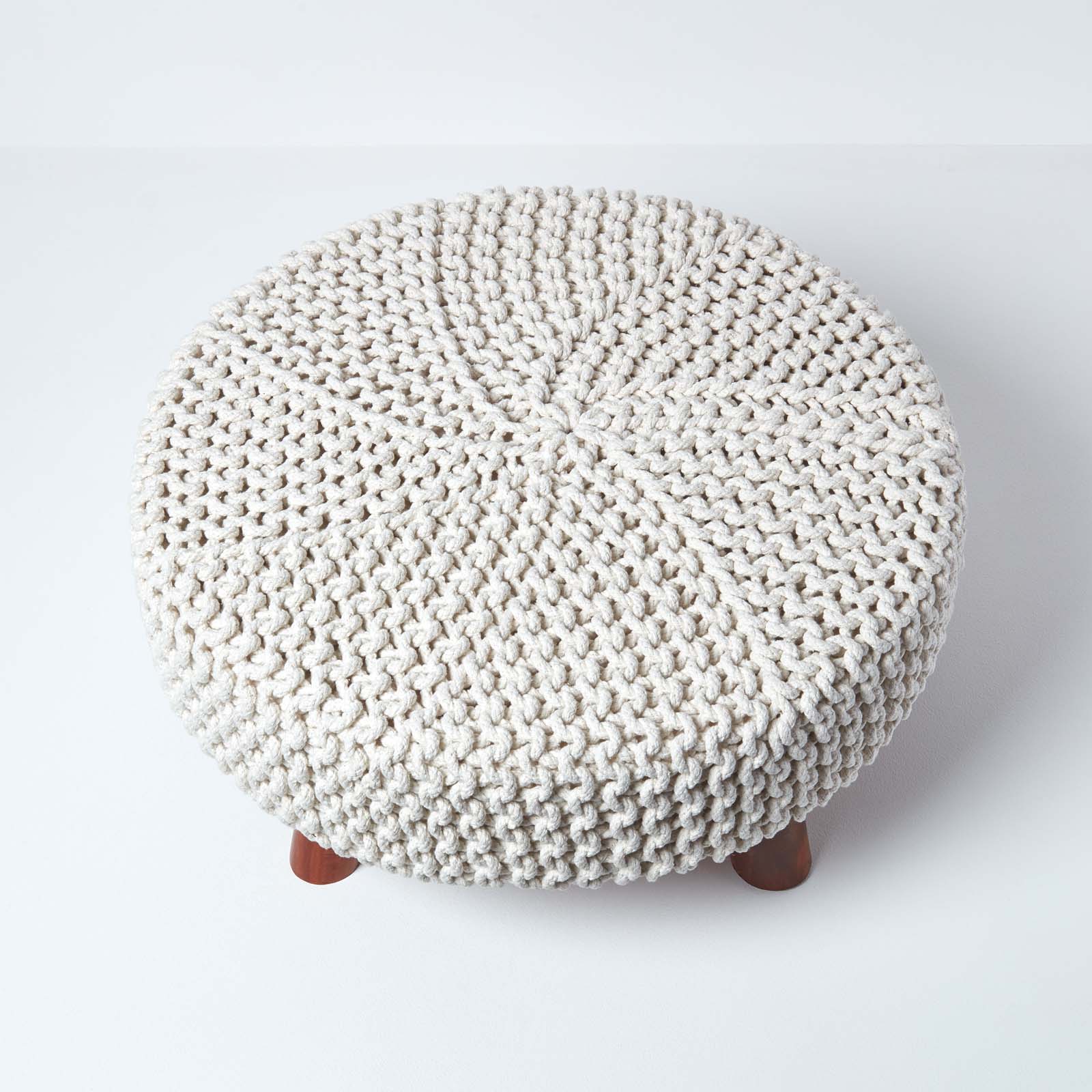 Homescapes Tabouret Tricot Pieds en bois 62 x 62 x 30 cm Blanc