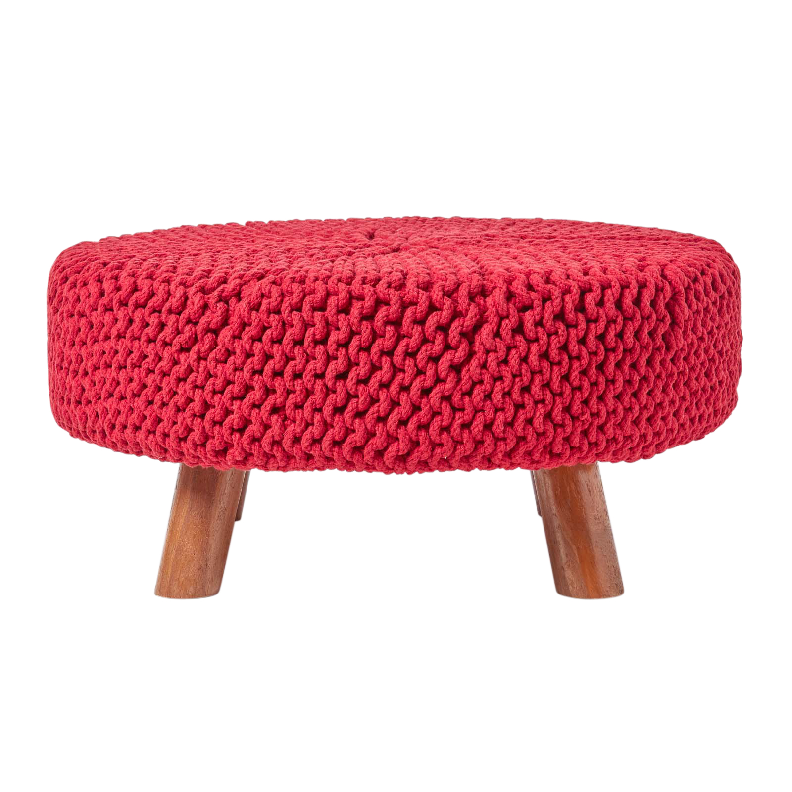 Homescapes Tabouret Tricot Pieds en bois 62 x 62 x 30 cm Rouge