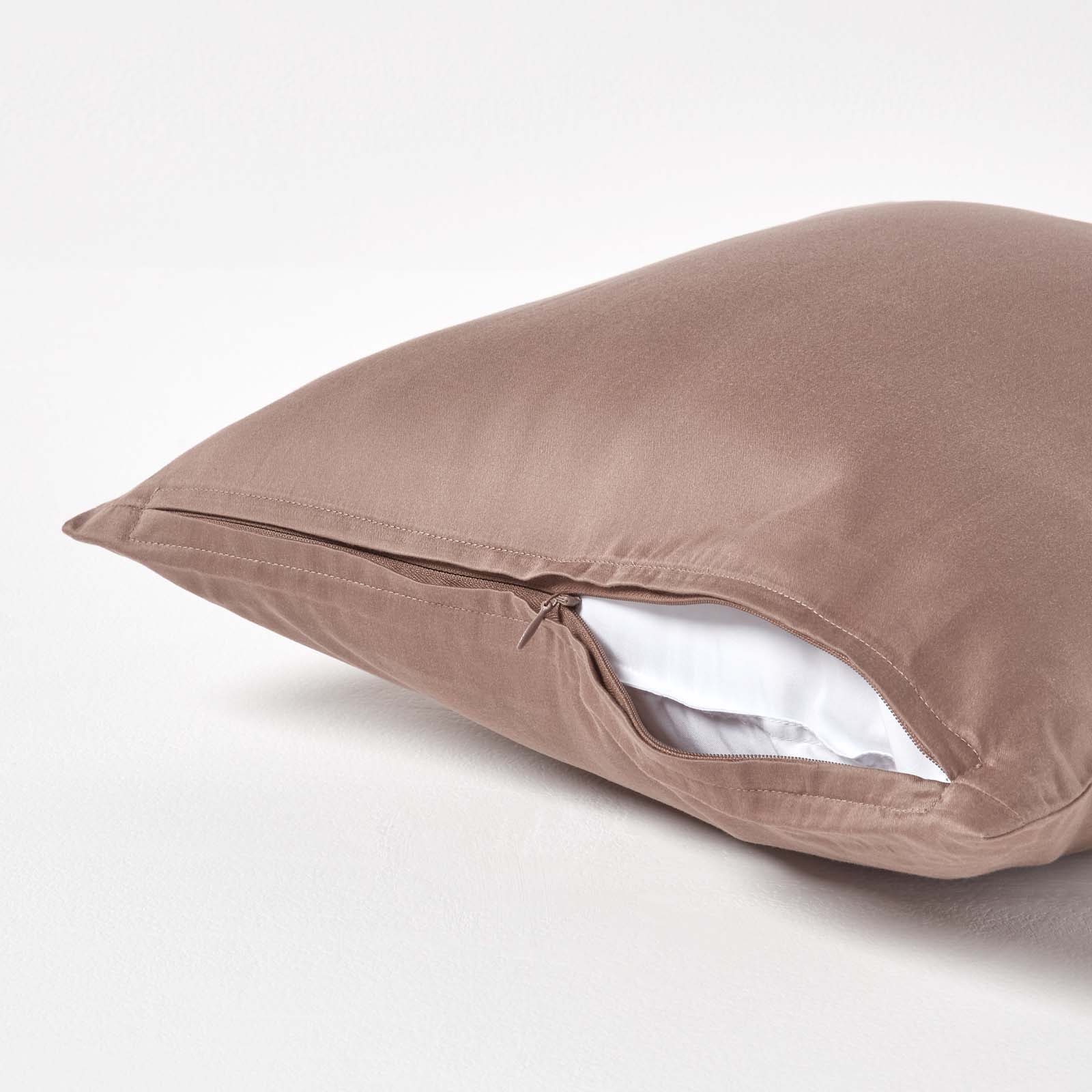 Homescapes Taie d'oreiller Marron 100% coton BIO 400 fils 40 x 40 cm