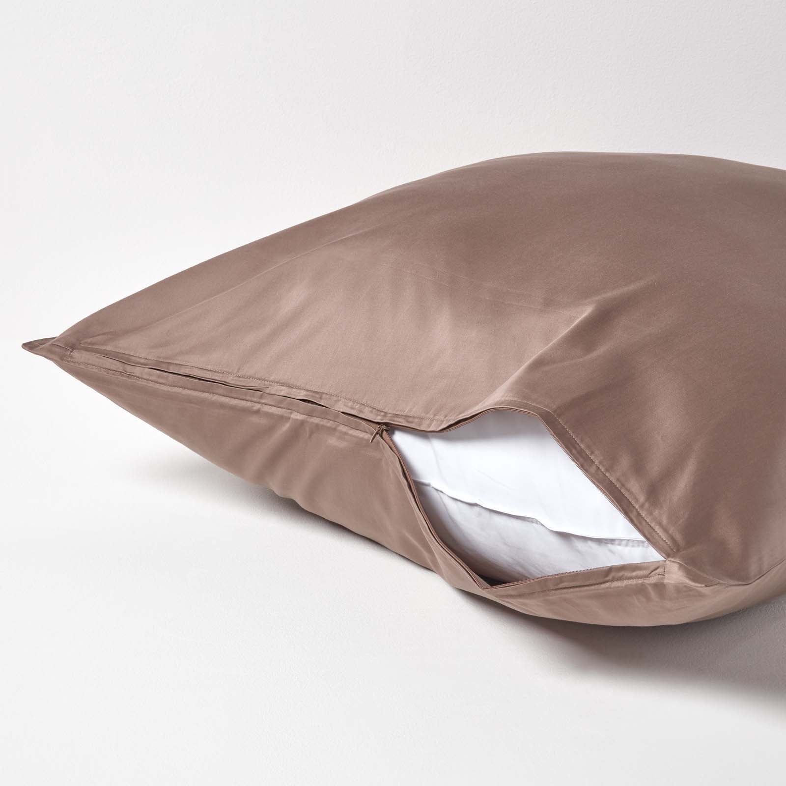 Homescapes Taie d'oreiller Marron 100% coton BIO 400 fils 80 x 80 cm