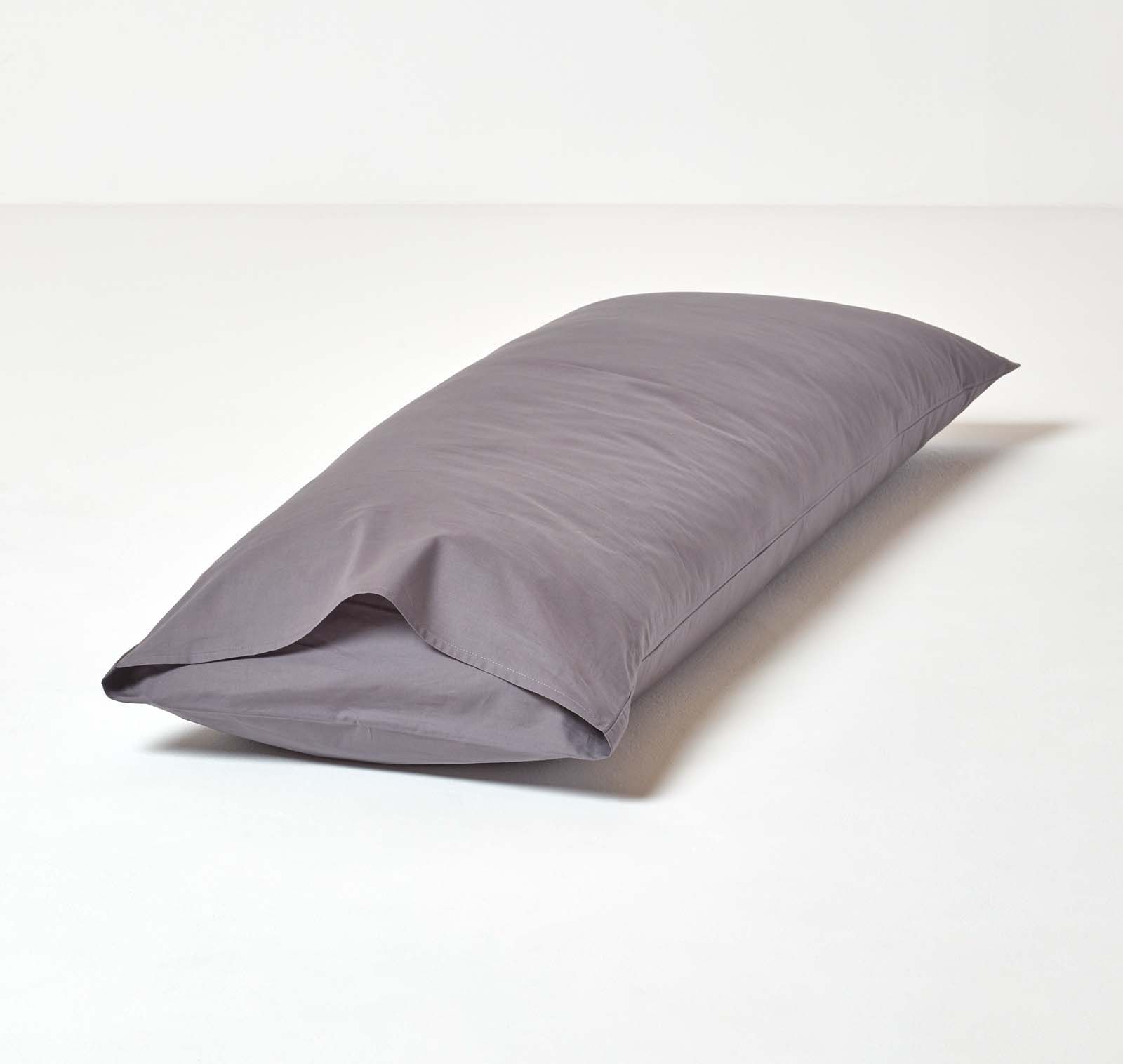 Homescapes Taie de Traversin en 100% coton 200 fils Gris foncé 50 x 140 cm
