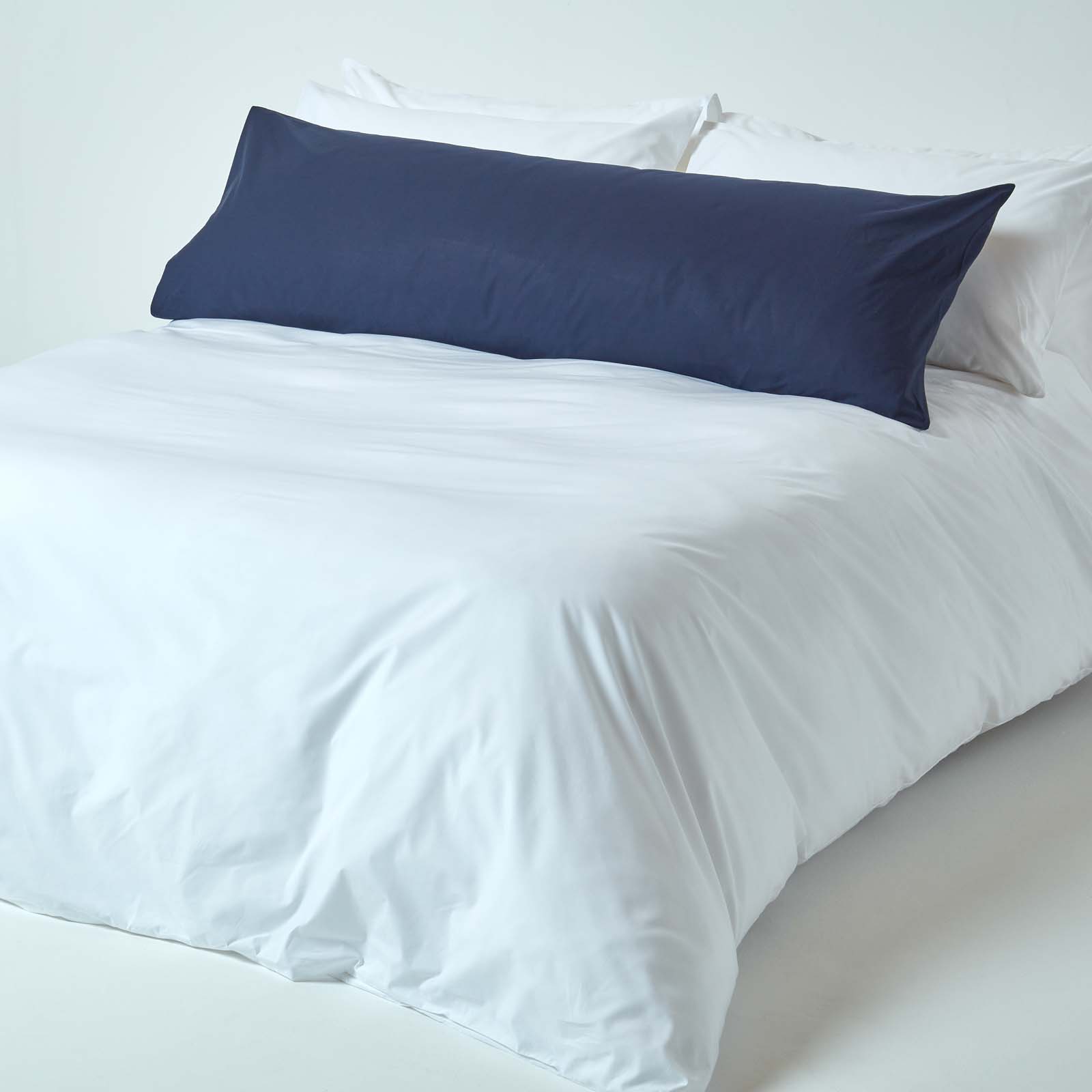 Homescapes Taie de Traversin plat en coton 200 fils Bleu Marine 50 x 140 cm Env