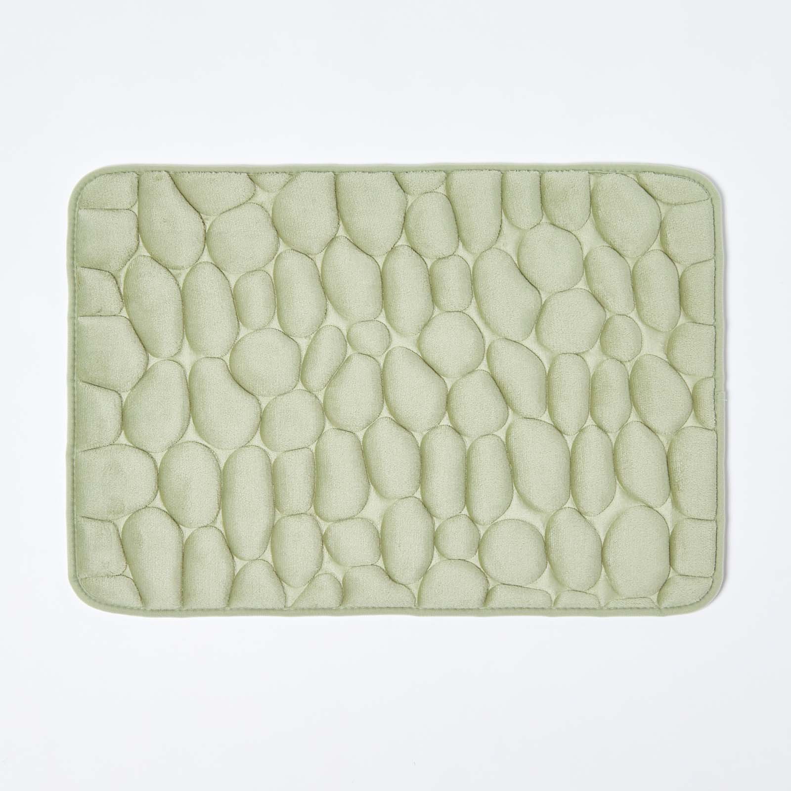 Homescapes Tapis de bain vert sauge à mémoire de forme et reliefs galet, 40 x 60 cm