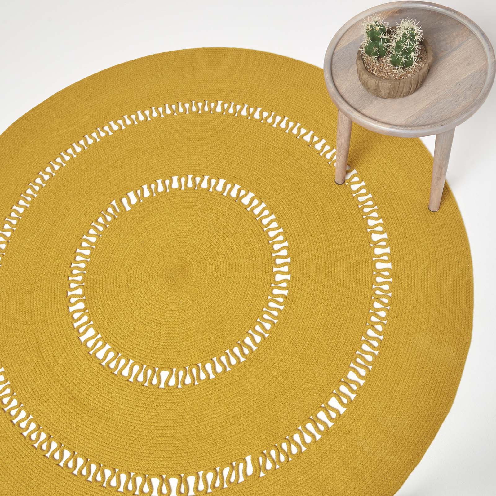 | Libellé | Homescapes Tapis rond tissé à plat en coton ajouré Jaune Moutarde, 120 cm |
