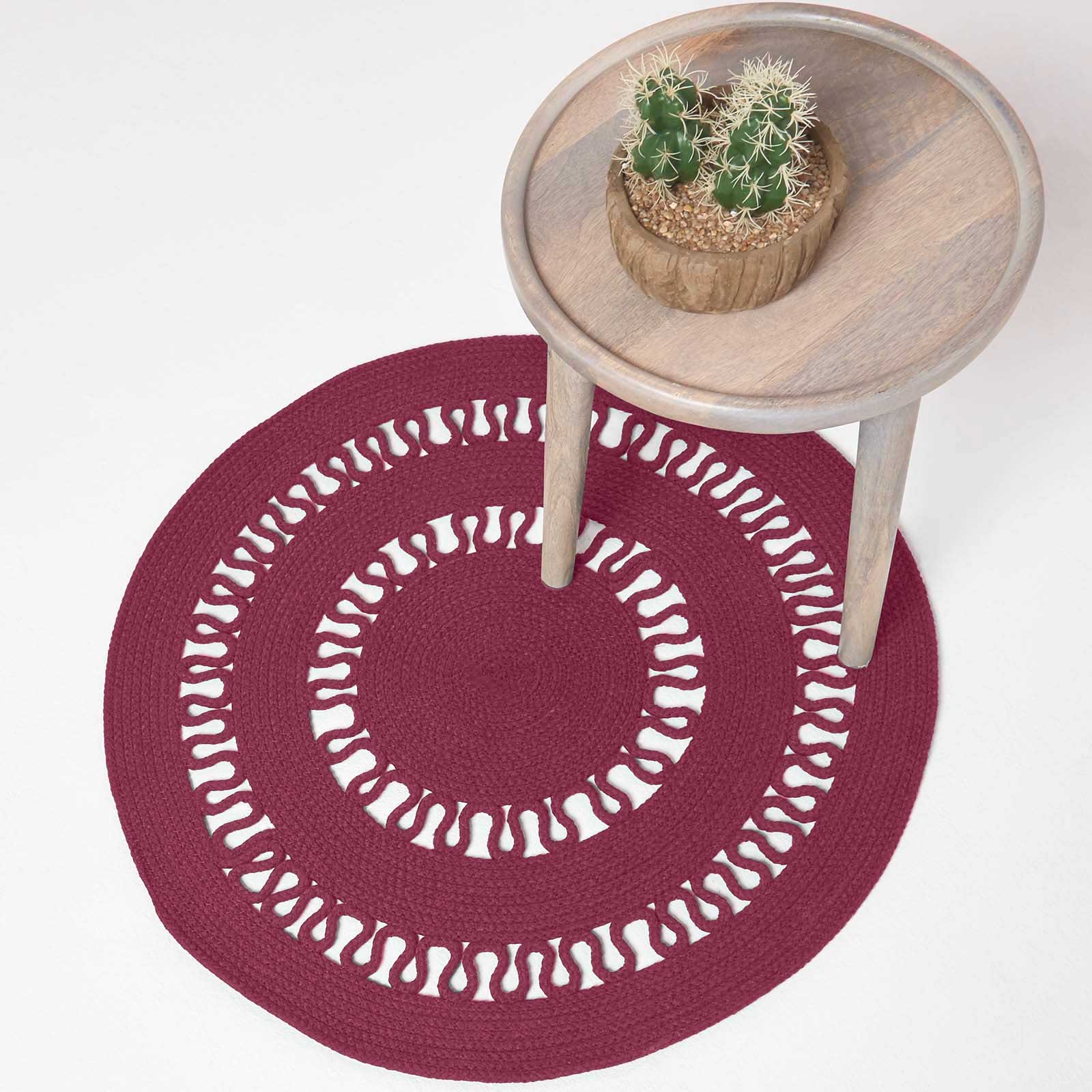 | Libellé | Homescapes Tapis rond tissé à plat en coton ajouré Prune, 90 cm |