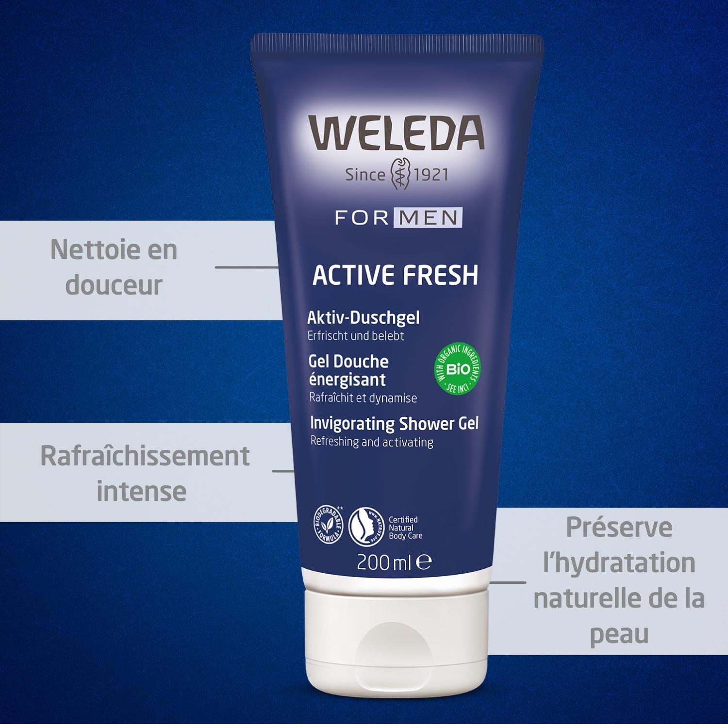 Le Gel Douche énergisant Homme, 100% d'origine naturelle, nettoie la peau en douceur grâce à sa base lavante végétale et diffuse un parfum frais, boisé et stimulant. Un cocktail tonique, alliance subtile d'huiles essentielles 100% naturelles, dont le romarin d'origine biologique pour un accent frais et stimulant. Sa texture gel légère répond aux préférences des hommes et respecte parfaitement la spécificité de leur épiderme, sans dessécher la peau.