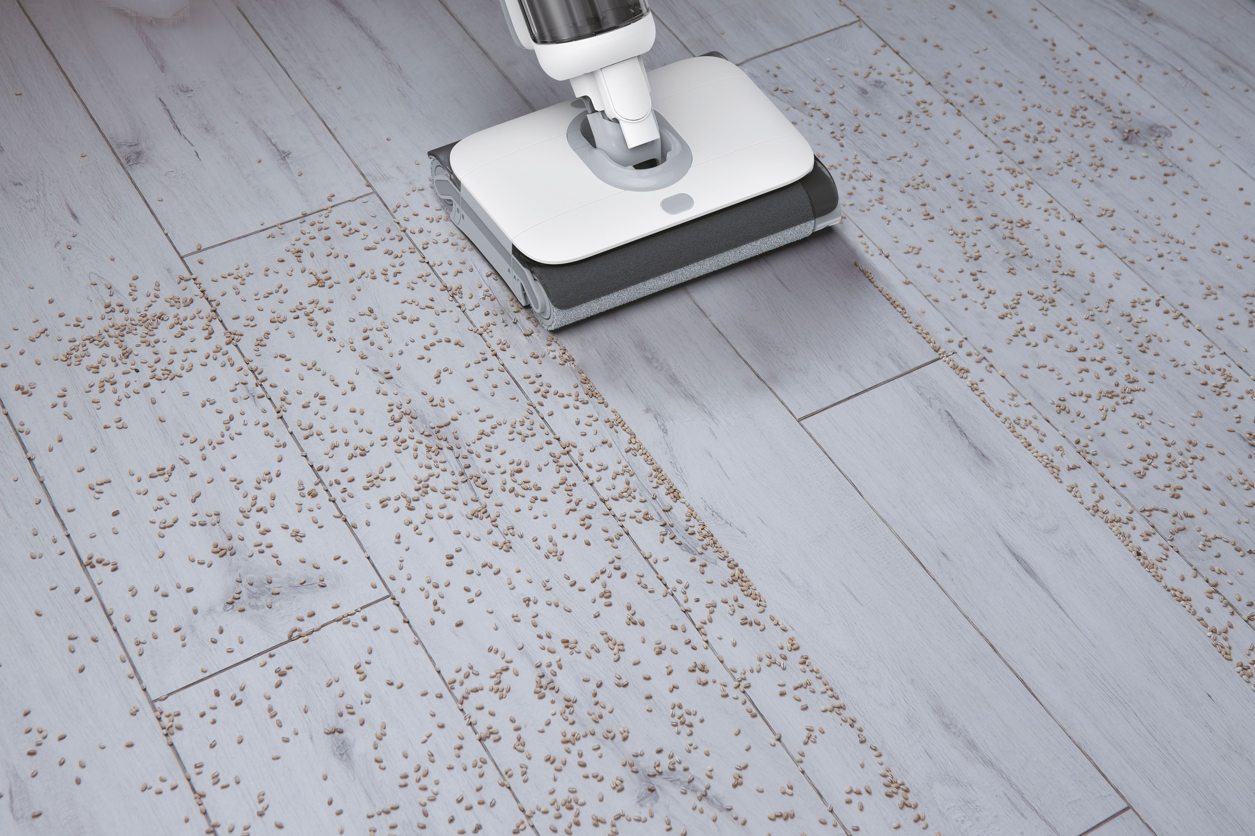 Aspire et lave en 1 seul passage. 2 fois plus propre, 2 fois plus rapide avec le système à deux rouleaux.