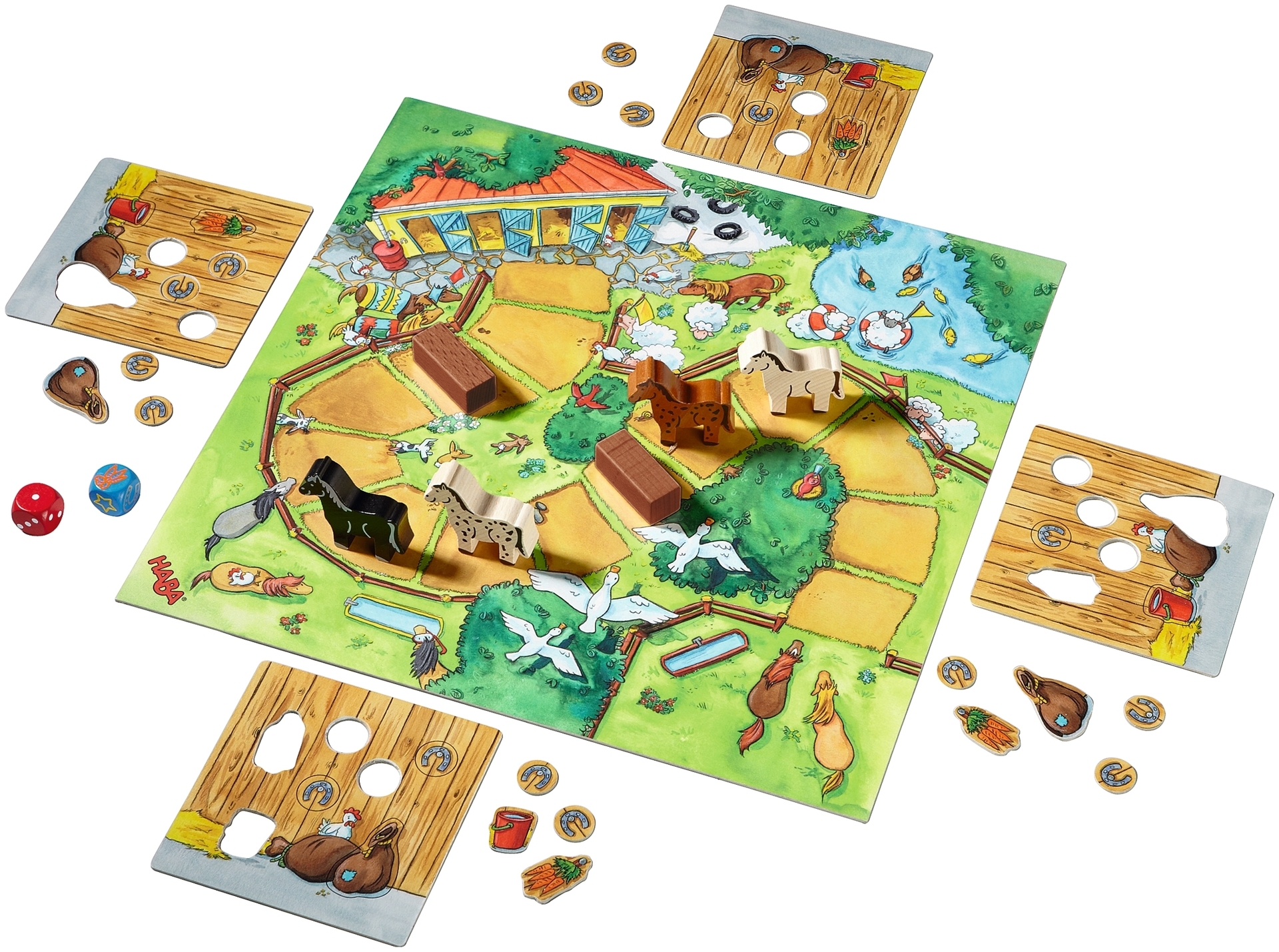 Les chevaux ont passé une belle journée dans le pré, mais ils doivent vite rentrer à la ferme. Dans leur box, il leur faut différentes choses, comme une botte de carottes ou un sac d’avoine. C’est à vous de les récupérer sur votre chemin menant à l'écurie. Celui qui choisira les bons dés en route et aura un peu de chance emmènera en premier son cheval au box tout en ayant rempli son puzzle.