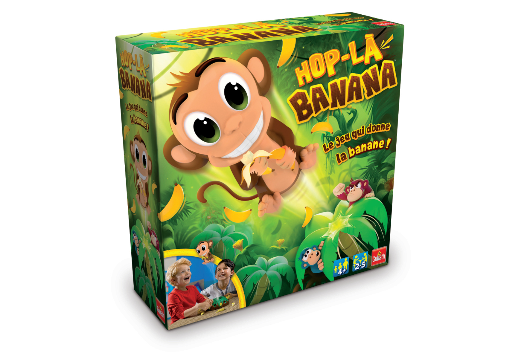 | La boîte contient | 1 singe sauteur, 1 réserve à bananes, 12 bananes, 1 dé, 1 planche dautocollants. |