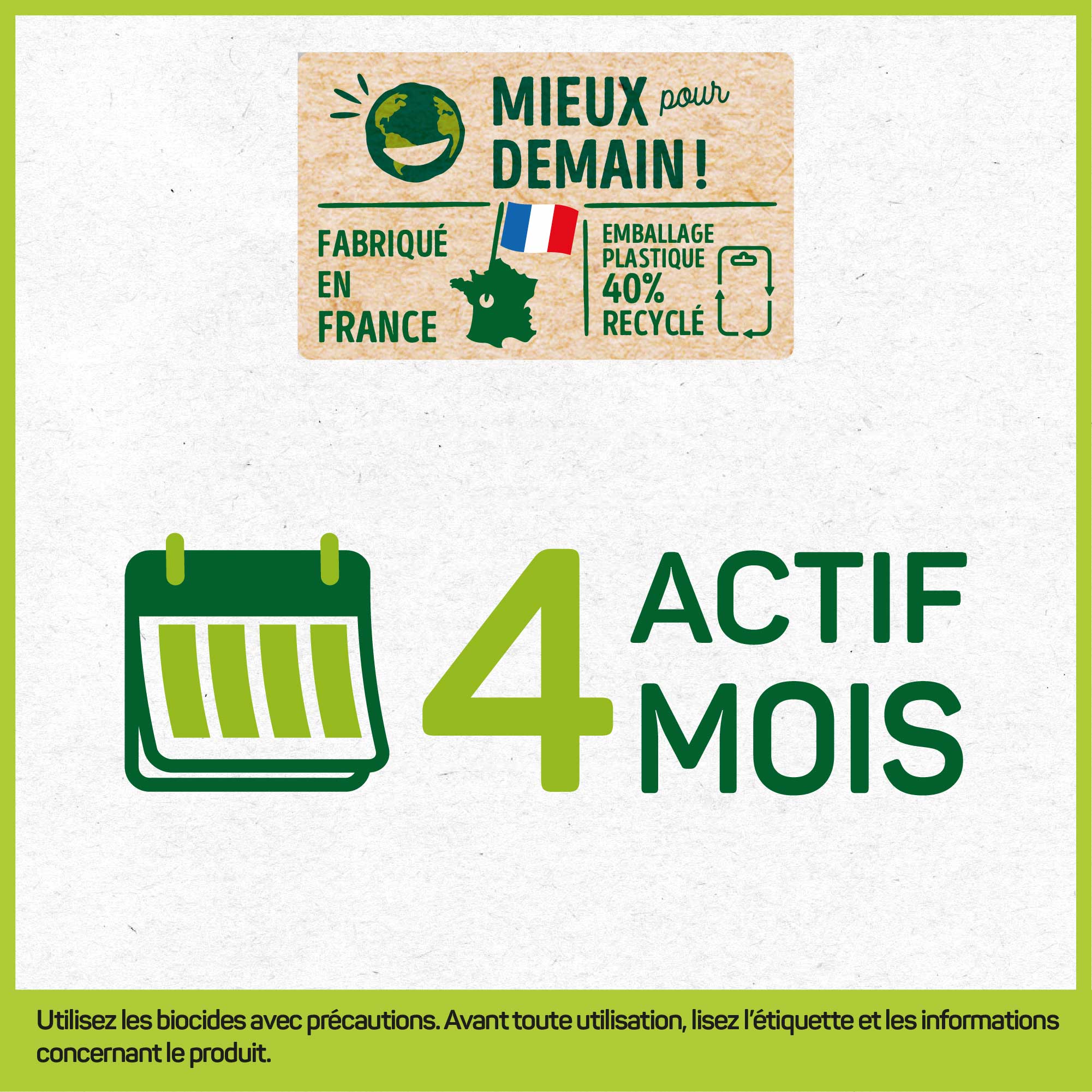| Avertissements | Avant toute utilisation, lisez l'étiquette et les informations concernant le produit. |