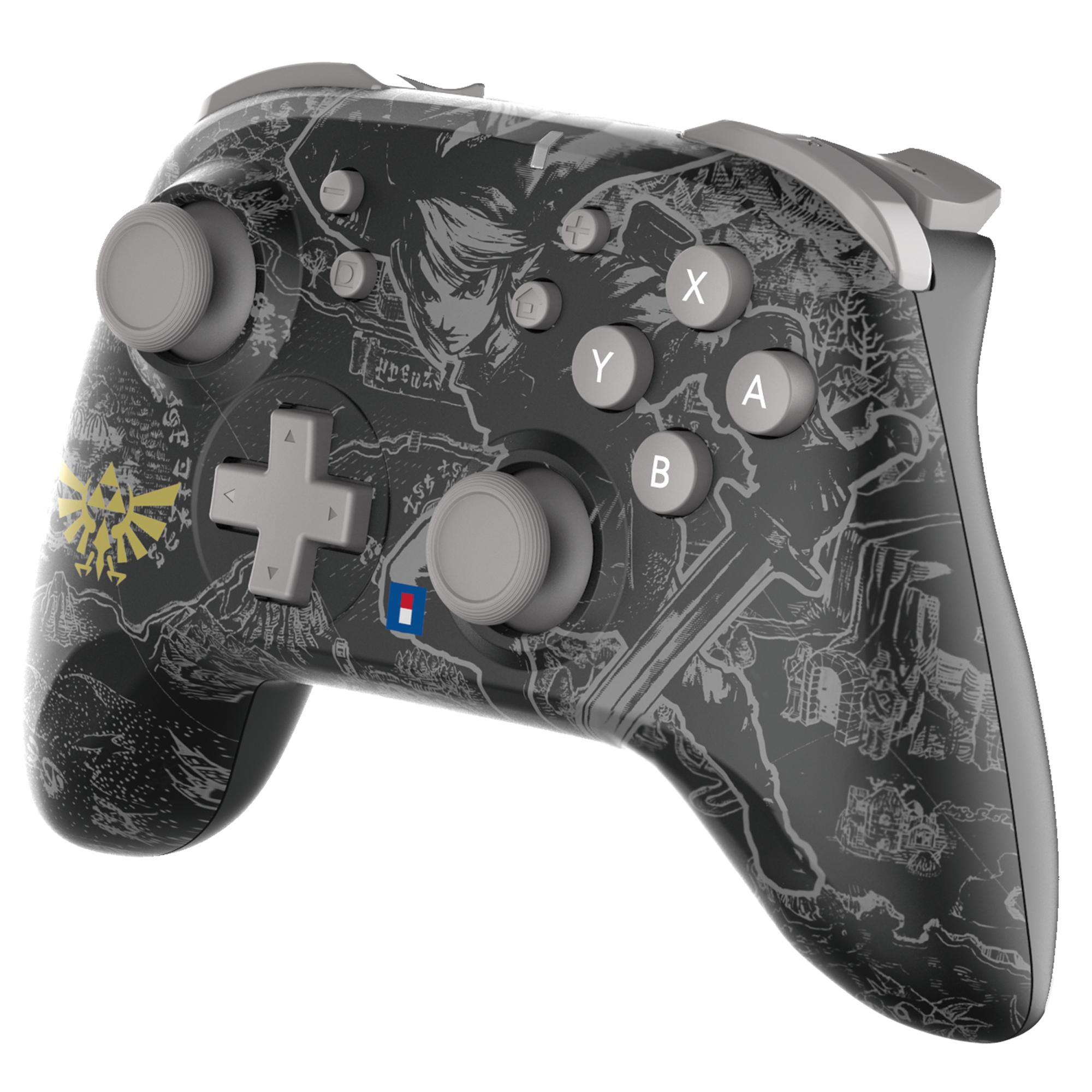 Horipad sans fil Zelda Licence Officielle Nintendo Connection Bluetooth Accéléromètre et Gyroscope Batterie rechargeable Port USB-C + câble de recharge inclus Design ergonomique et extra large pour une prise en main idéale Durée de la batterie: jusqu'à 15h Distance de connexion: jusqu'à 10m N'inclut pas les fonctions NFC, Infrarouge et Vibration Nouveau design Zelda.