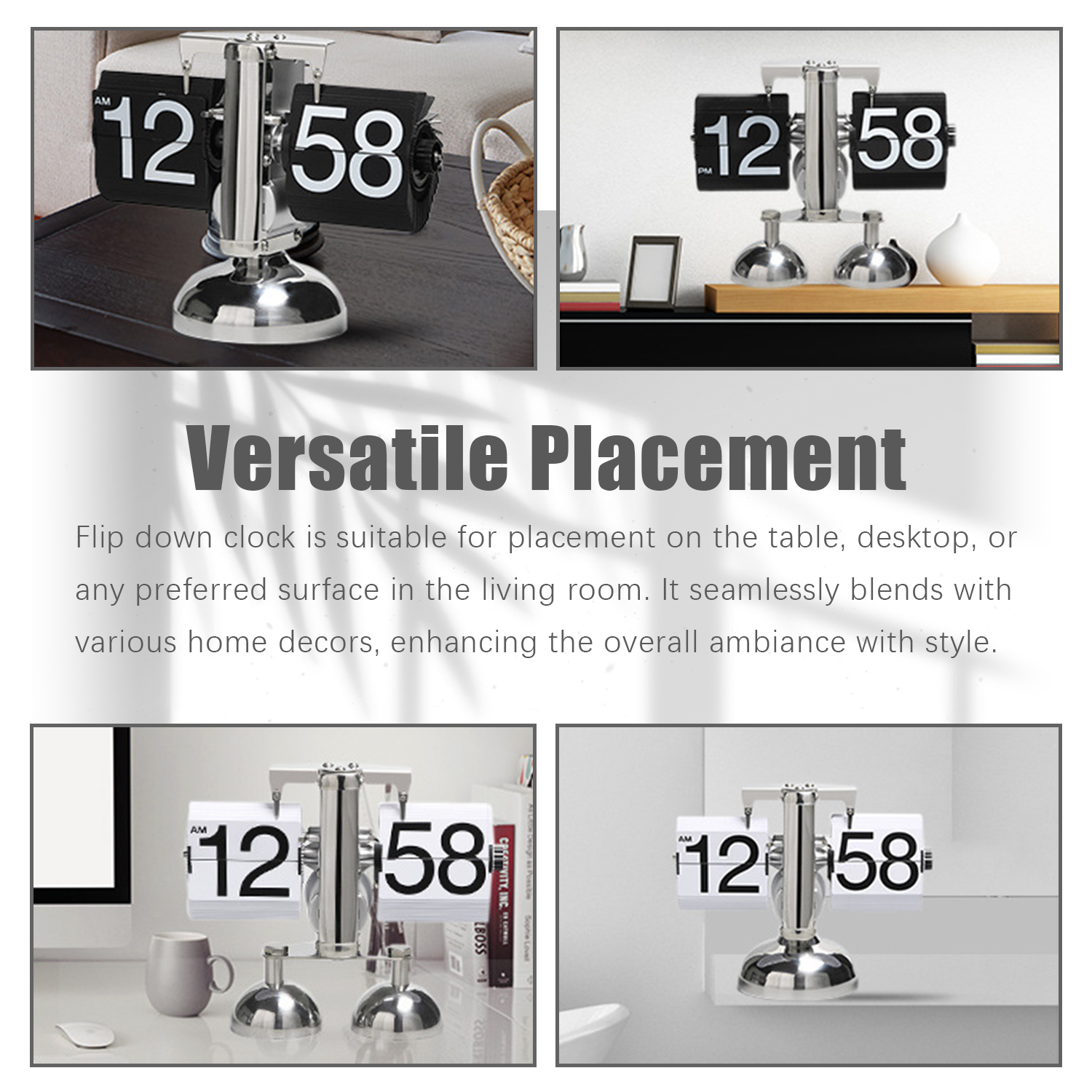 Placement polyvalent : L'horloge rabattable peut être placée sur la table de chevet, le bureau ou toute surface du salon. Il s'intègre parfaitement à divers décors de maison et améliore l'ambiance générale avec style.