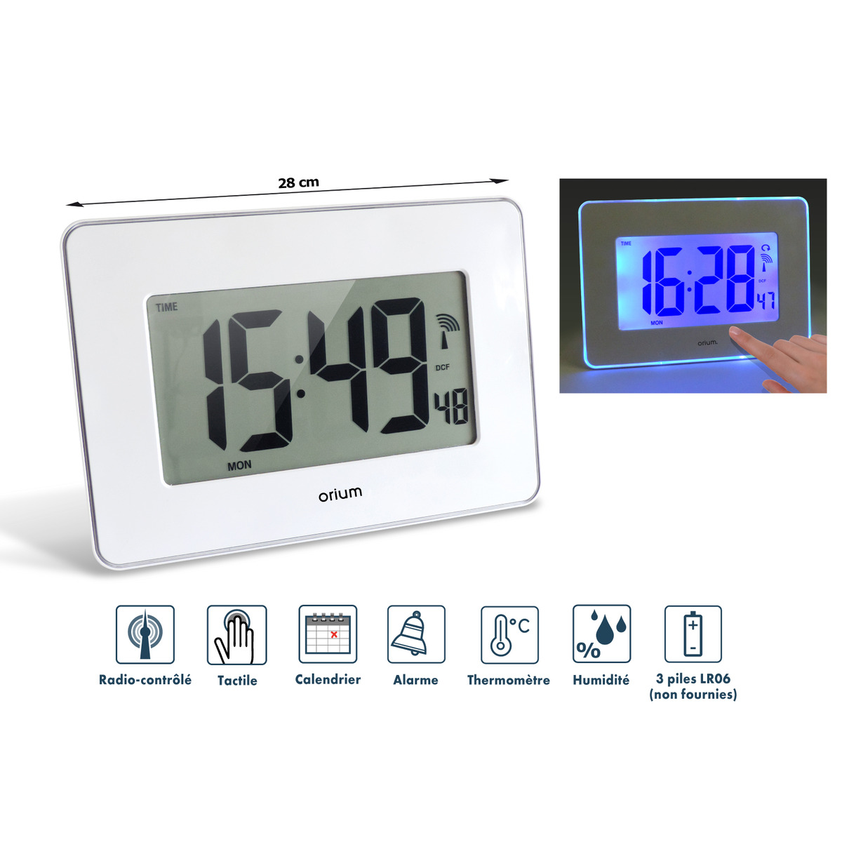 Caractéristiques de l'horloge digitale radio contrôlée Sensitive - Orium :