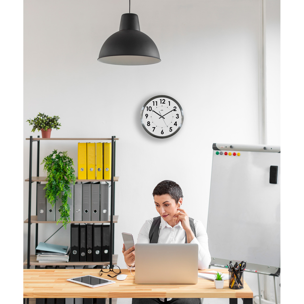 Son cadre en inox lui confère un style moderne et robuste, s'intégrant facilement dans n'importe quel intérieur. Le mouvement Quartz silencieux garantit un fonctionnement précis sans le bruit du tic-tac, parfait pour les environnements calmes.