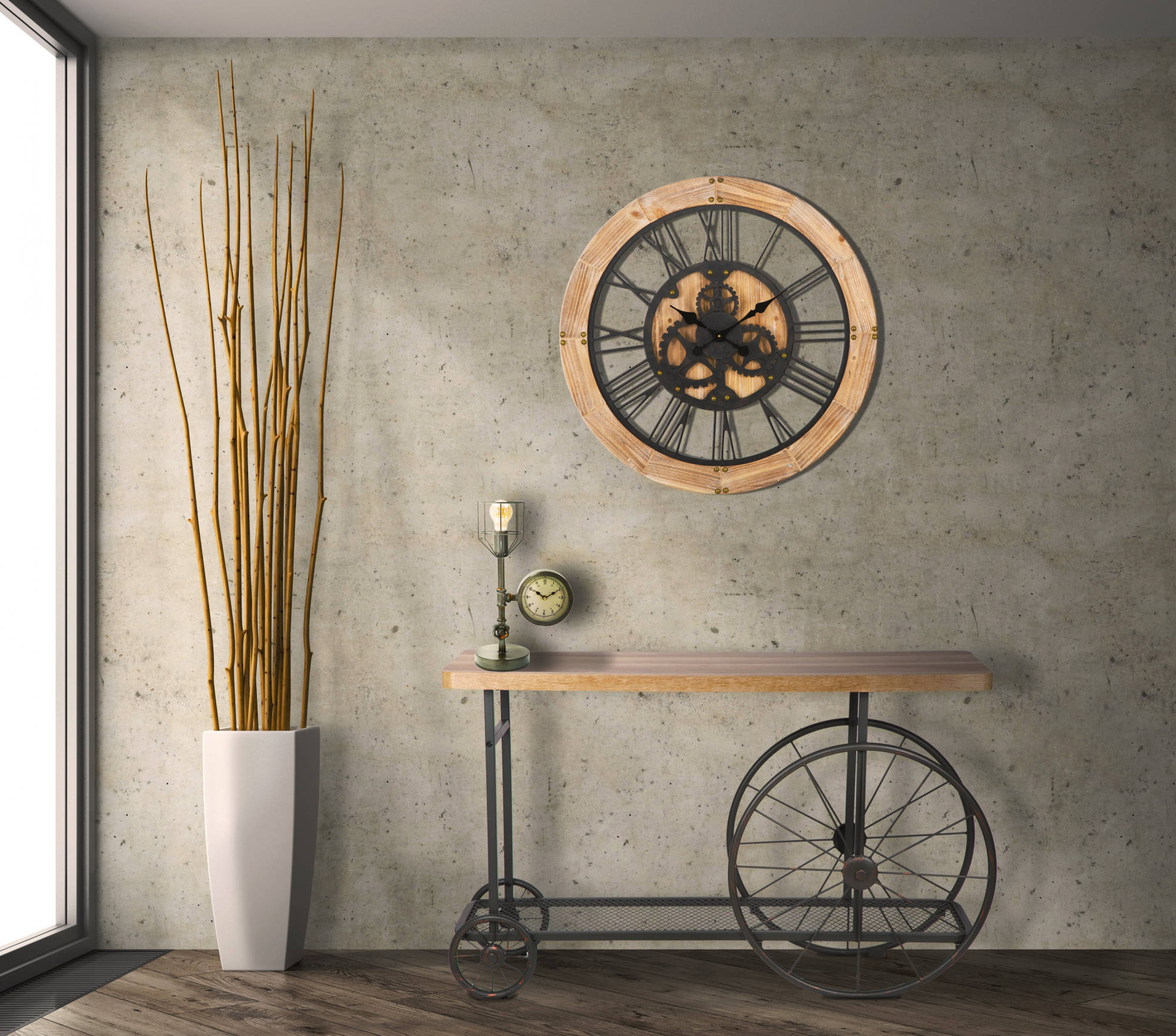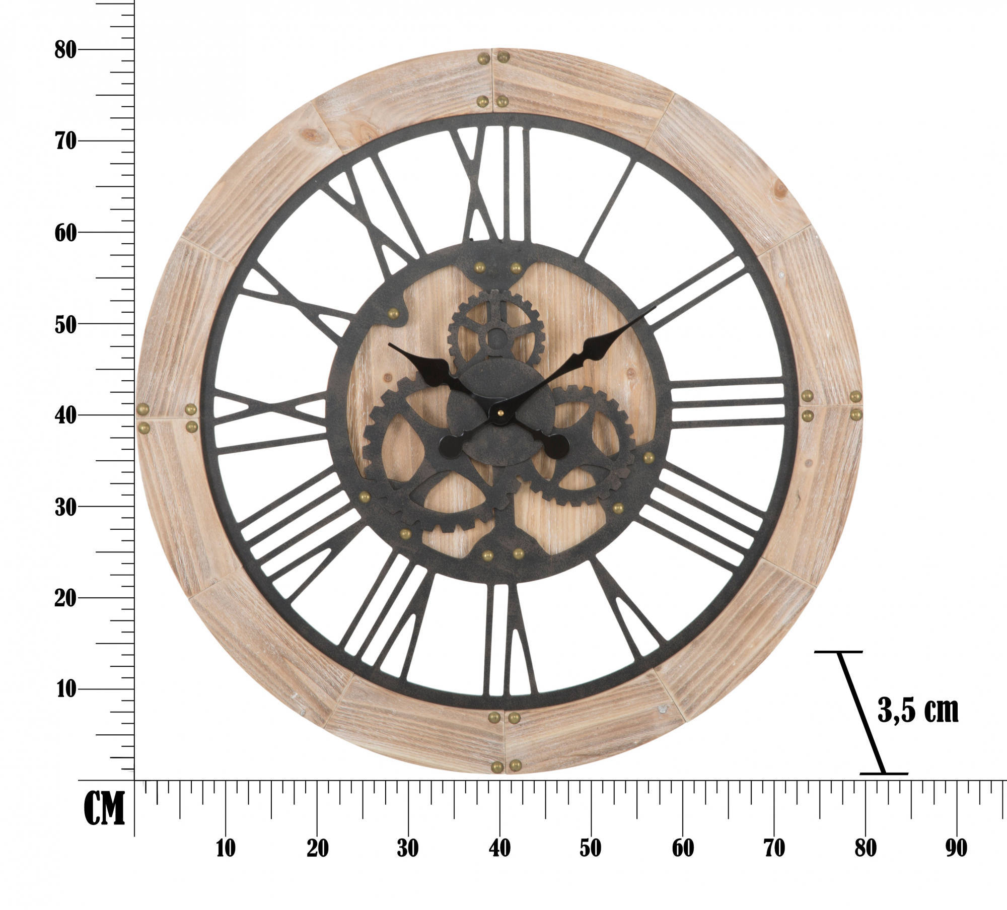 Horloge murale en mdf et métal. Gardez le temps avec style grâce à des montres aux lignes industrielles et avant-gardistes. Dimensions : 80 x 3