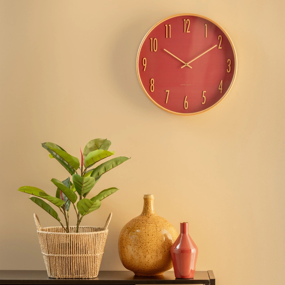 Horloge en bois colorée pour une déco unique et joyeuse. Dimensions : Diam 40 x 5 cm Matière : bois fonctionne avec 1 pile AA non fournie