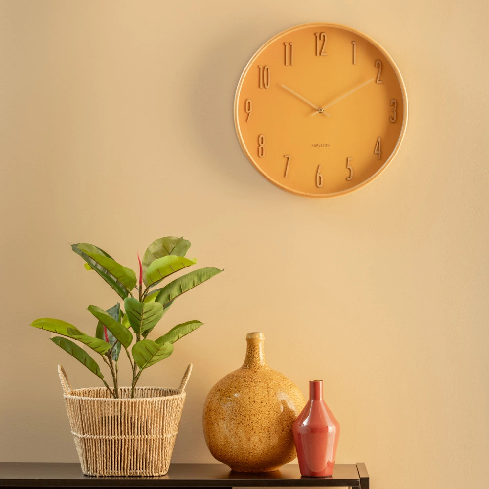 Horloge en bois colorée pour une déco unique et joyeuse. Dimensions : Diam 40 x 5 cm Matière : bois fonctionne avec 1 pile AA non fournie