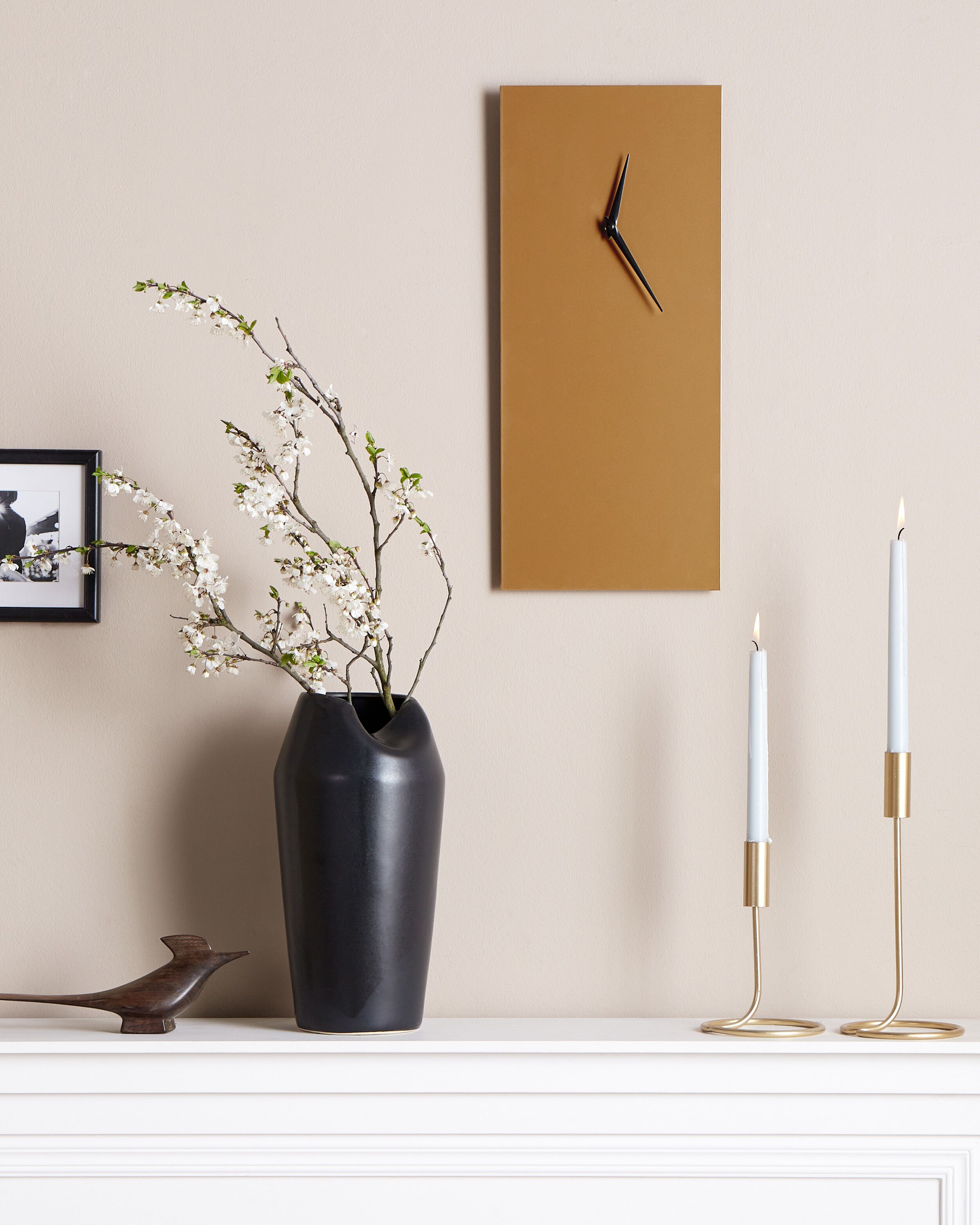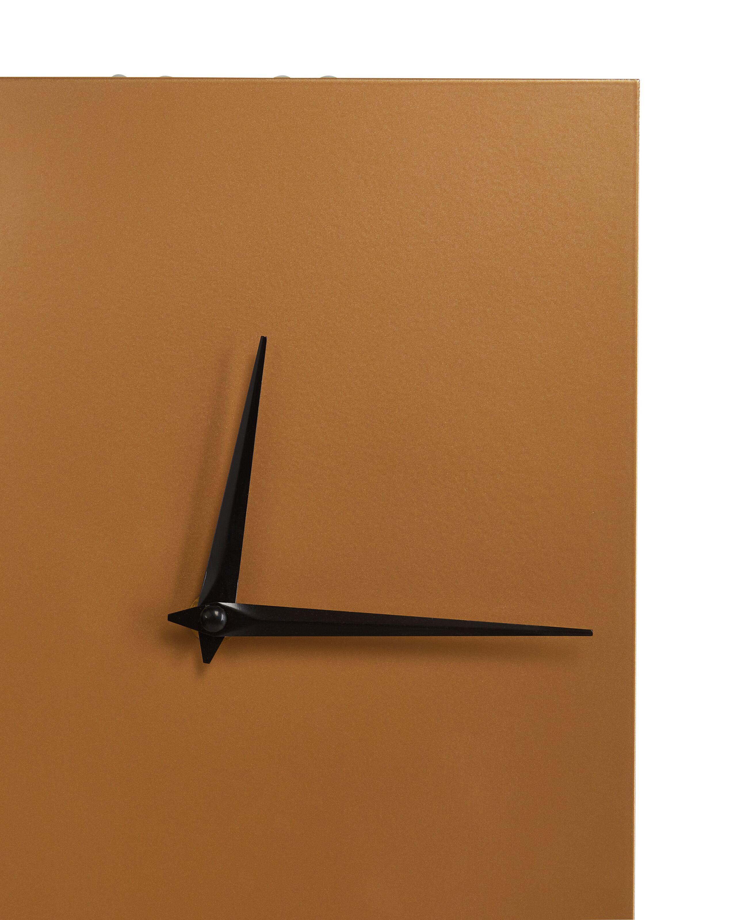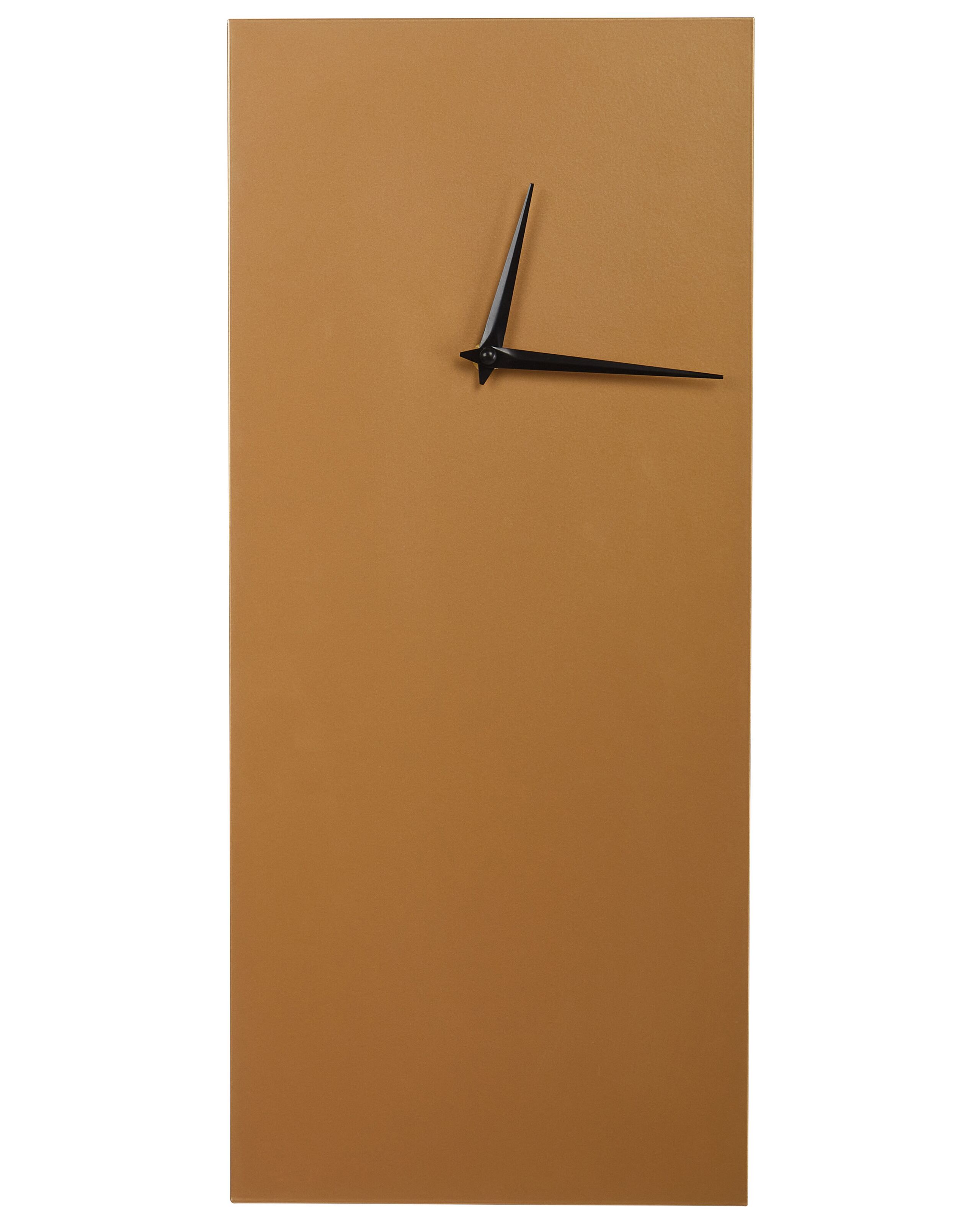 Horloge suspendue minimaliste sans chiffres. Cette horloge murale à la luxueuse teinte dorée témoigne d'une élégance intemporelle. Avec ses branches noires se distinguant de la teinte raffinée, ce design minimaliste respire la sophistication. Dépourvue de chiffres, elle offre une esthétique épurée et moderne, ce qui en fait un ajout étonnant à n'importe quelle pièce.