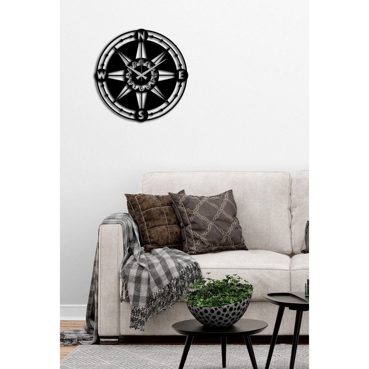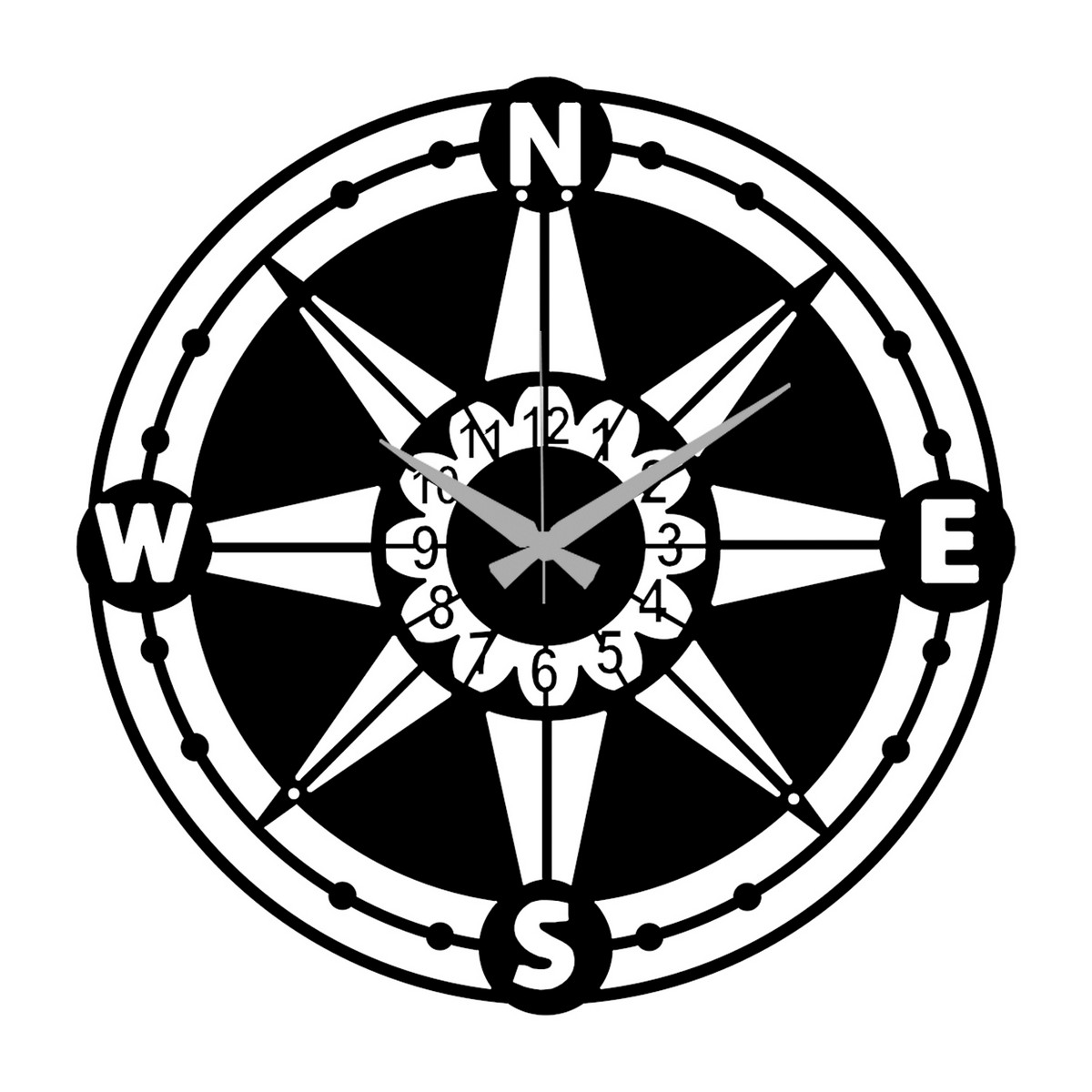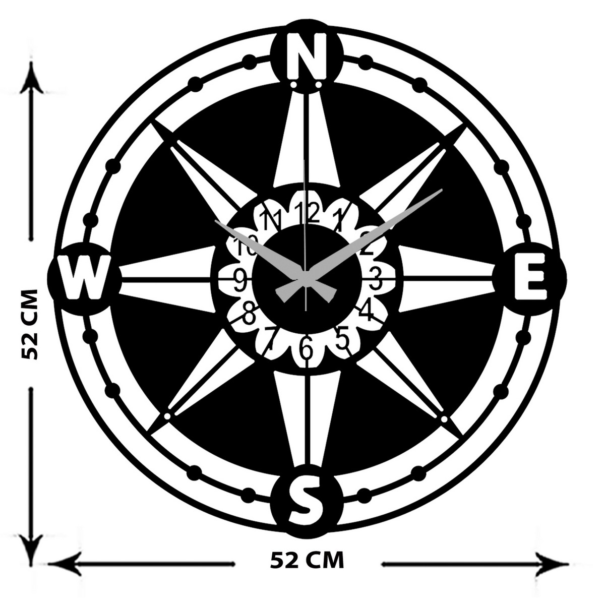 Le produit est constitué d'une seule pièce de métal DKP de 1,5 mm. Il est recouvert d'une couche de poudre électrostatique. L'emballage comprend l'étrier de fixation au mur et les vis.. Cette horloge murale est la solution parfaite pour décorer les murs de votre maison ou de votre bureau. Elle vous permet de marquer le temps avec une touche d'originalité. Prêt à être accroché. | Collection: Rose des Vents | Couleur: Noir | Matériel: Métal | Ensemble: 3 | Dimensions du Produit: L52xP0,15xA52 cm | Poids du Produit (Kg): 1,51 | Poids Supporté (Kg): - | Dimensions de Boîtes: W53xD3xH53 cm | Poids de Boîtes (Kg): 1,91 | Nombres de Boîtes: 1