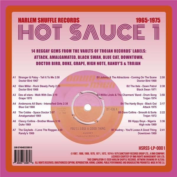 Il s'agit du repress très attendu du premier tome de la série HOT SAUCE L.P., en rupture de stock depuis longtemps. La première version était en octobre 2020. HOT SAUCE VOLUME 1 comprend Rocksteady, Boss Reggae, Early Dub & Early Reggae des morceaux jamaïcains originaux exceptionnels, y compris des chansons rares, des joyaux négligés et des trésors oubliés. Les maisons de disques présentées sur le premier volume sont Attack, Amalgamated, Black Swan, Blue Cat, Downtown, Doctor Bird, Duke, Grape, High Note, Randy's et Trojan. Les titres ici ont été sélectionnés en fonction de leur intérêt musical d'abord, de leur rareté, et de leur complémentarité. Ces pistes sont toutes des pistes exceptionnelles, des « pistes tueuses », il n'y a aucun « remplissage » du tout.