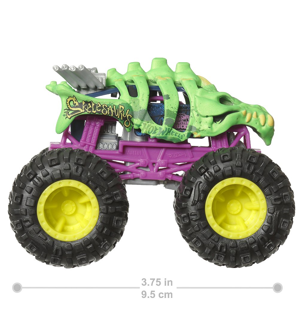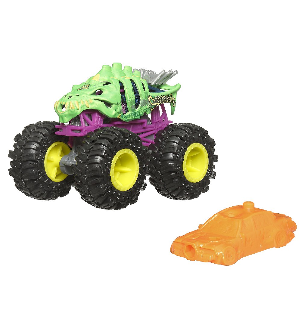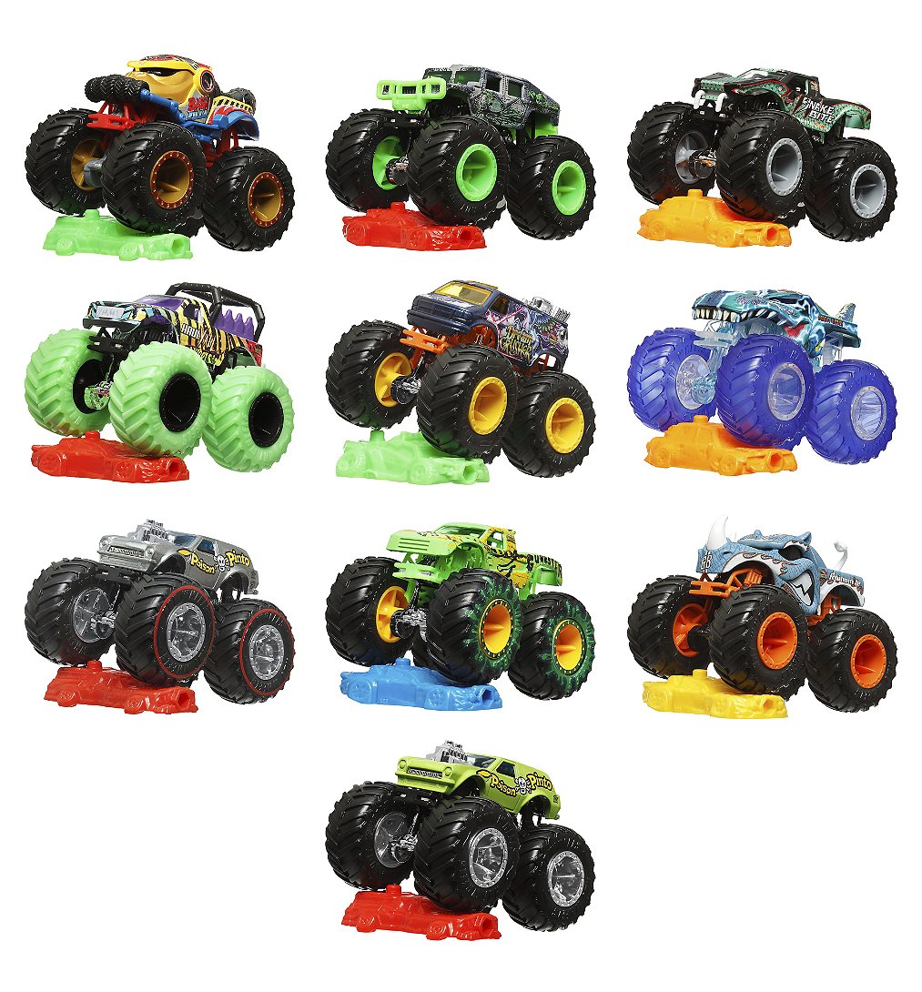 Les véhicules Hot Wheels® Monster Trucks à l’échelle 1/64 sont les camions les plus déments jamais conçus pour dominer totalement leurs rivaux ! Ils sont prêts à affronter les adversaires en duel et les écraser avec leurs roues GÉANTES ! Chaque Monster Truck inclut une roue collector et l’emballage comprend une fiche d’information détaillant pour chaque véhicule son nom, son type, sa force, son attaque crash unique et son but ultime, pour inventer des histoires extraordinaires ! Vendus séparément. Certains produits peuvent ne pas être commercialisés. Les couleurs et les décorations peuvent varier.