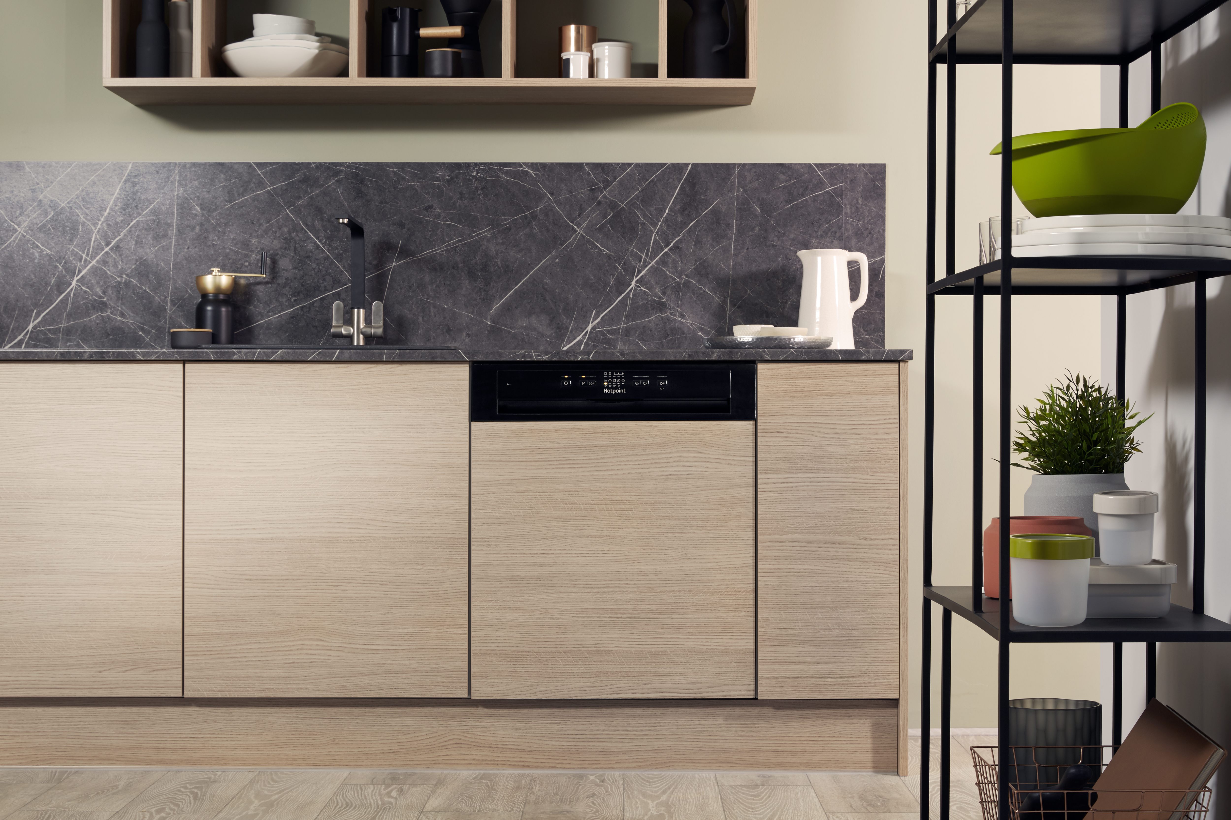 La vasca della lavastoviglie Hotpoint in acciaio inossidabile garantisce stoviglie sempre brillanti.