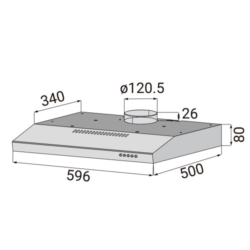 Dimensions de la hotte : L. 59,.6 x P. 50 x H. 8 cm