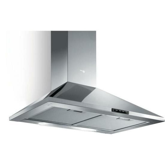 | Autre(s) information(s) | Hotte décorative murale en acier inox avec insert en verre, forme en corolle anglée et dessous plat, cheminée réglable en acier inox. Commandes par boutons-poussoirs en façade. Deux filtres métalliques anti-graisse amovibles. |