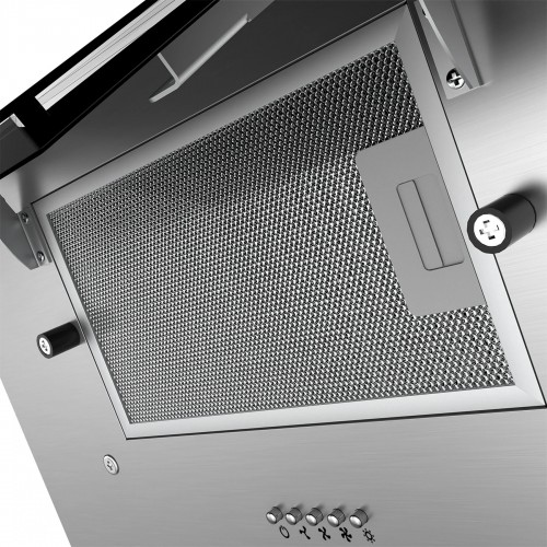 Composé d'une façade en verre et acier inoxydable, elle offre des lignes droites et opte pour une inclinaison optimale pour vous protéger de cogner la tête. Son apparence élégante s’intégrera parfaitement à votre cuisine. En comparaison avec les hottes traditionnelles, elle prend peu de place, idéale pour les petits espaces.