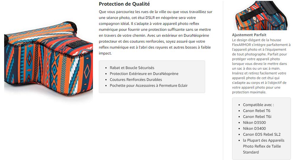 | Libellé | Housse Appareil Photo Numérique en Néoprène Rembourré, Protection Robuste - Bohème - USA Gear |