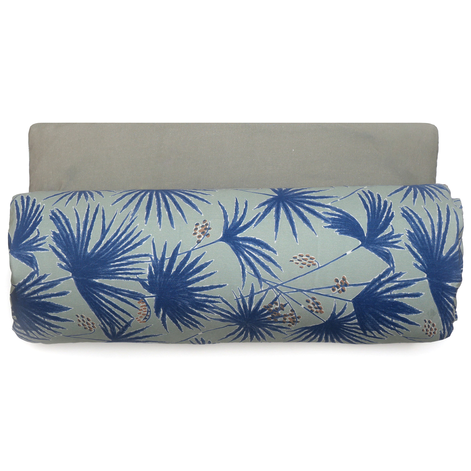Housse d'édredon PALAWAN 80x200 cm en lin lavé imprimé végétation exotique et coton lavé bleu Indigo