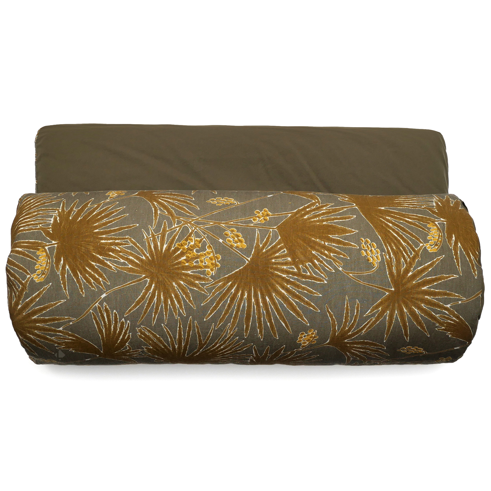 Housse d'édredon PALAWAN 80x200 cm en lin lavé imprimé végétation exotique et coton lavé vert Kaki