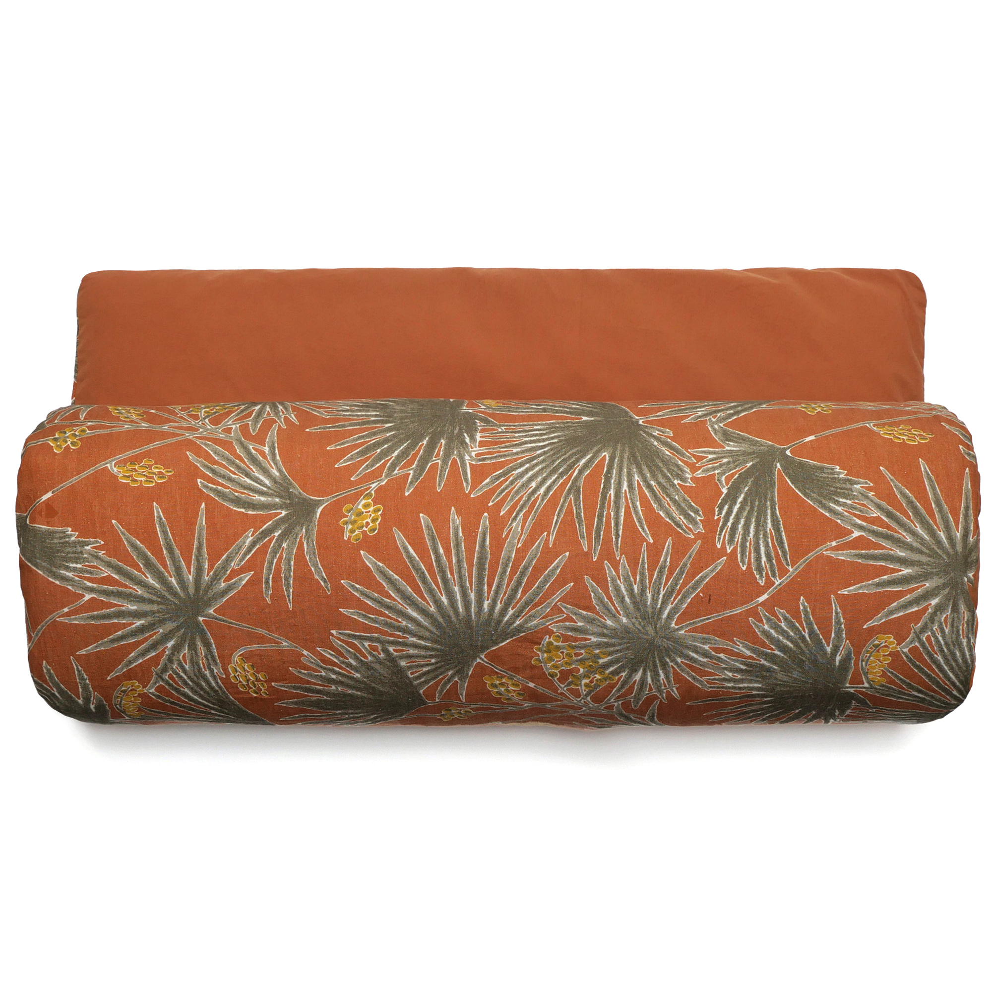 Housse d'édredon PALAWAN 80x200 cm en lin lavé imprimé végétation exotique et coton lavé orange Terre cuite