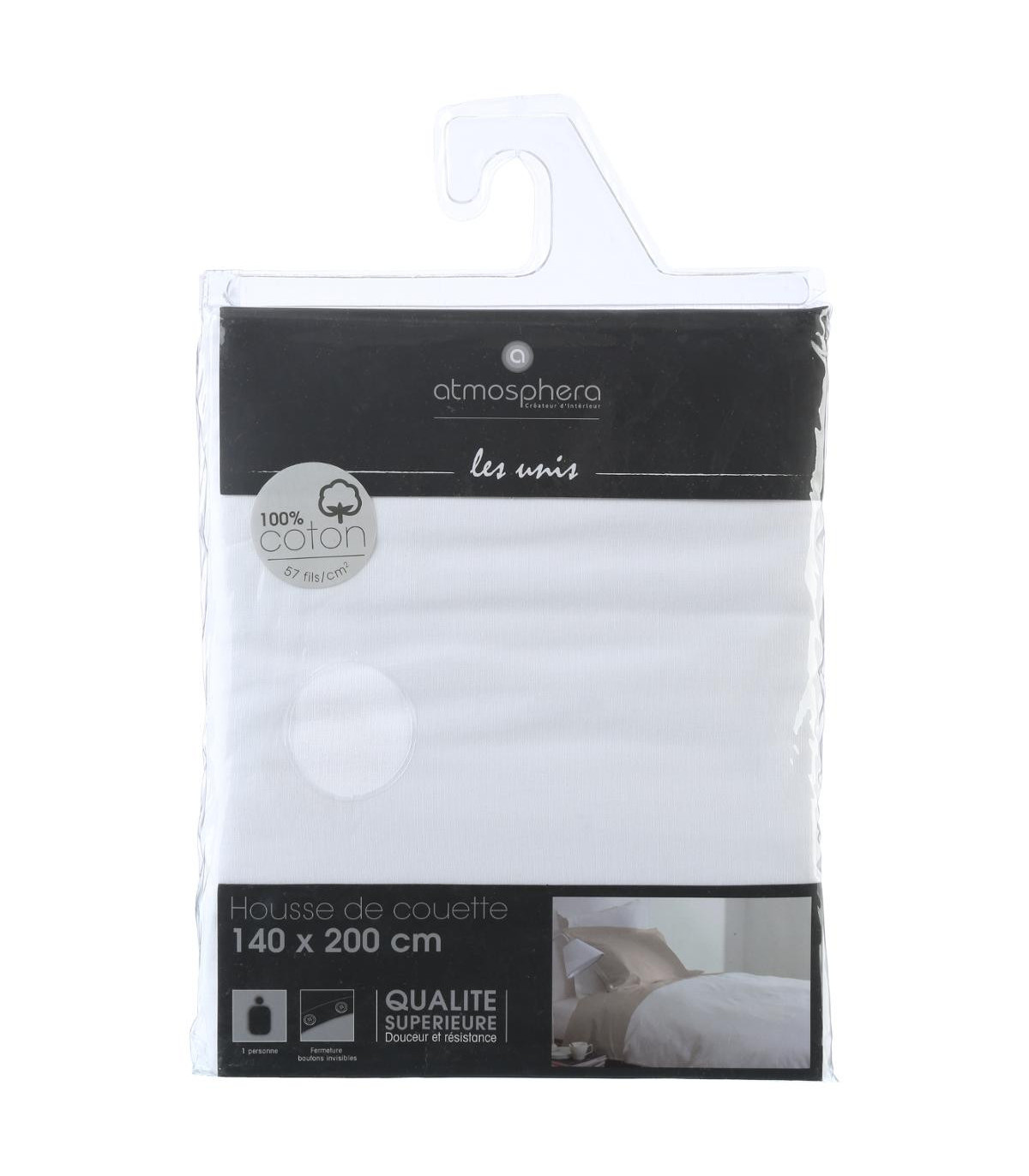 | Libellé | Housse de couette 1 Personne en Coton Blanche 140 x 200 cm |