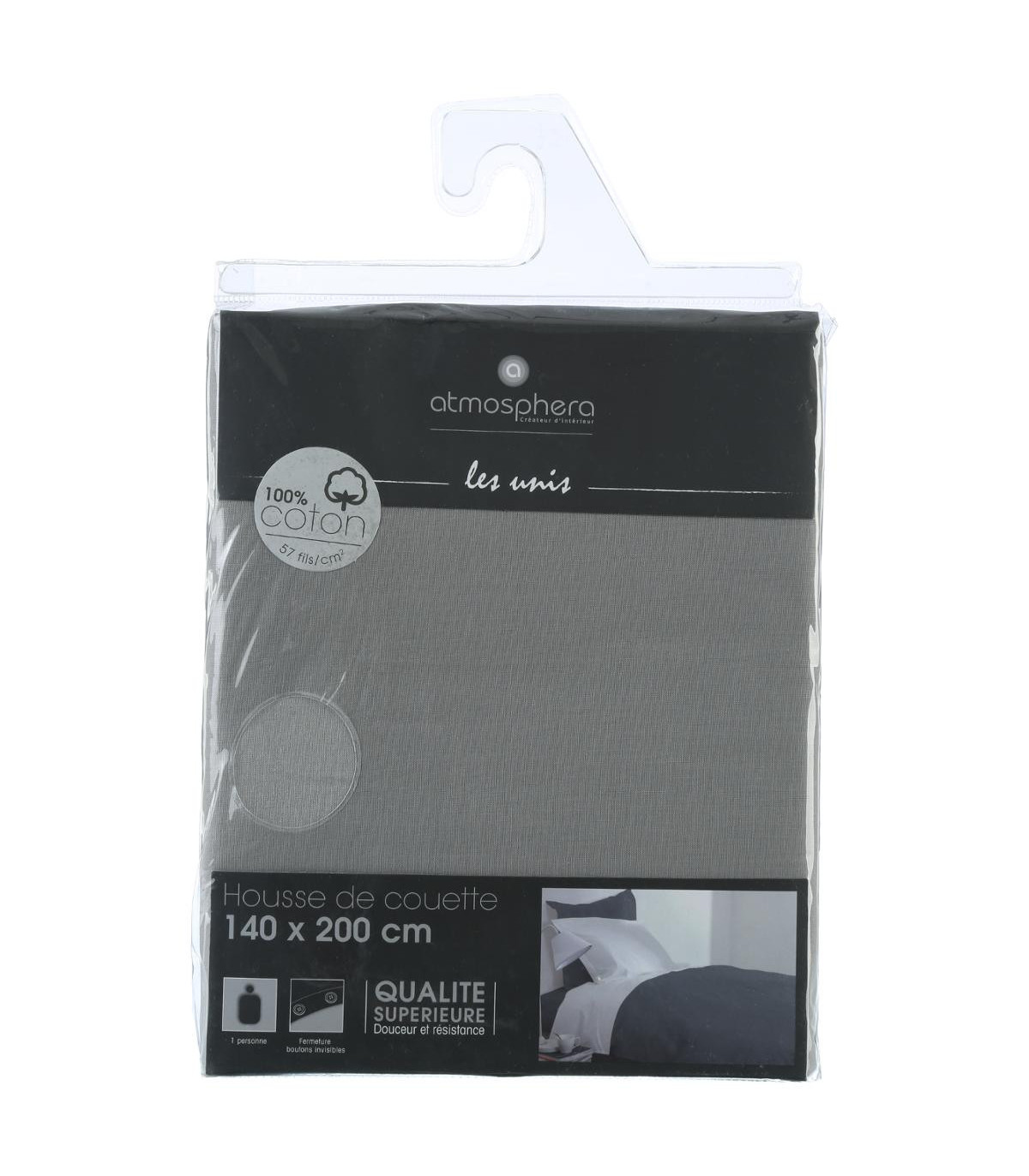 | Libellé | Housse de couette 1 Personne en Coton Gris 140 x 200 cm |