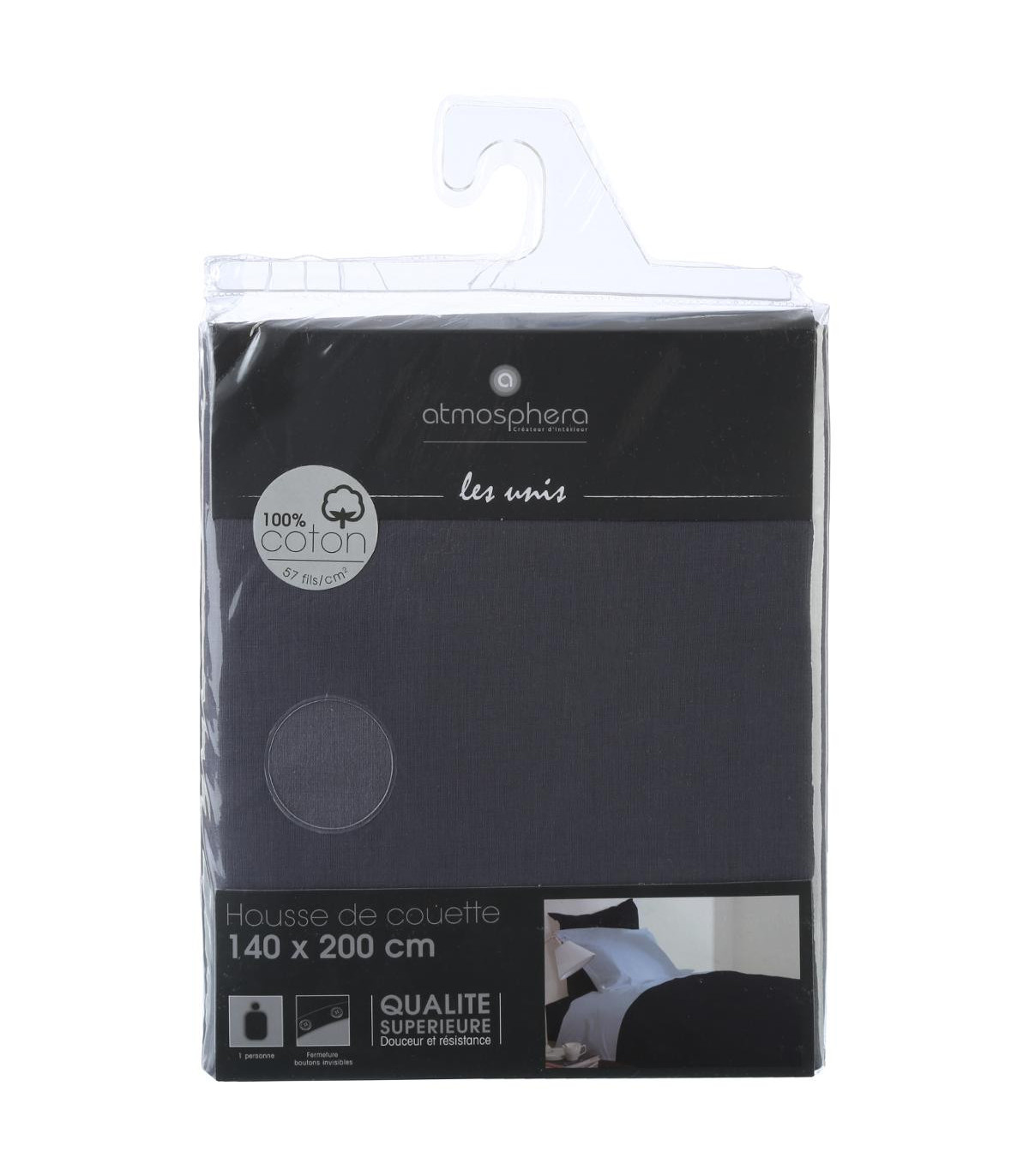 | Libellé | Housse de couette 1 Personne en Coton Gris foncé 140 x 200 cm |