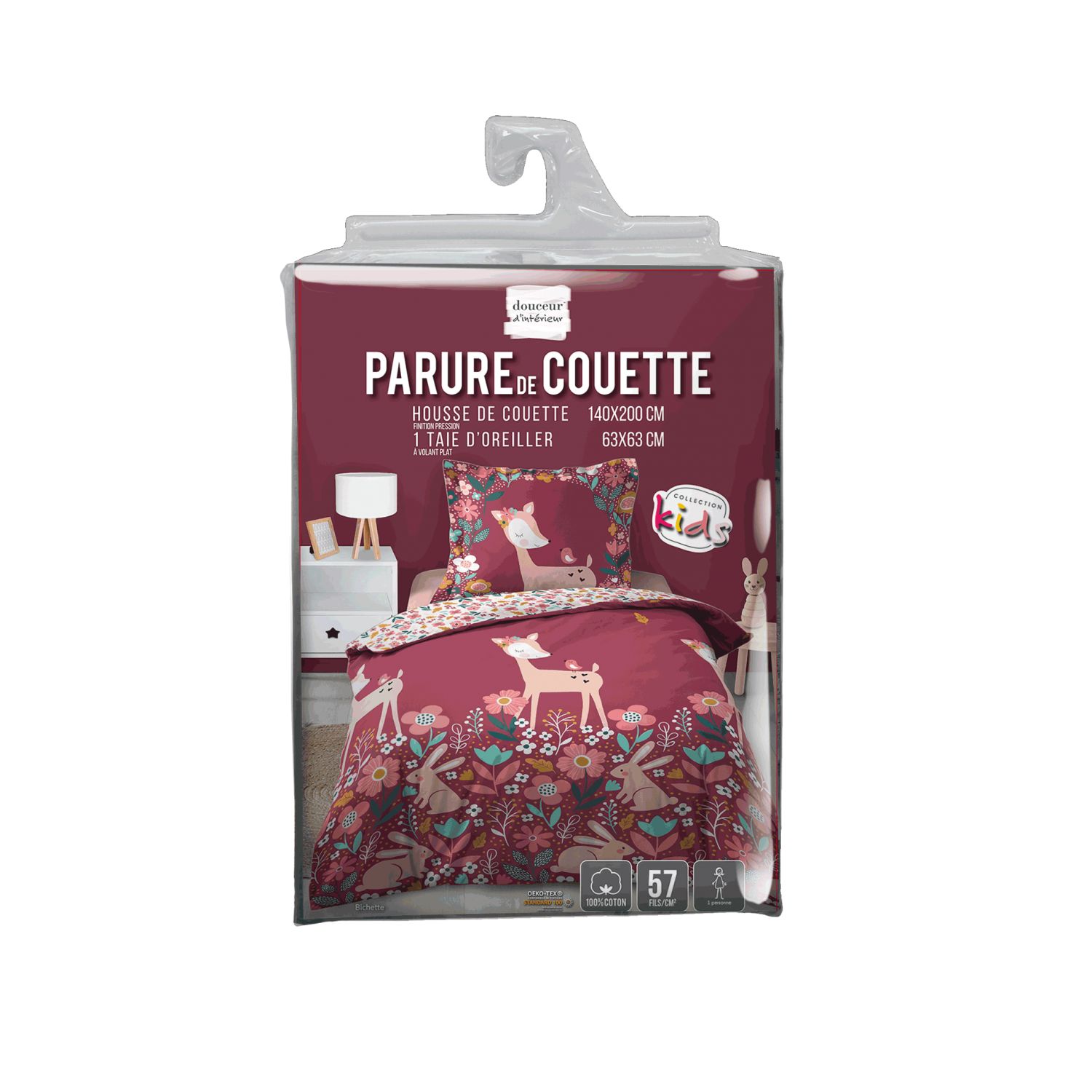 | Libellé | Housse de couette 140 x 200 cm + taie - 57 fils - Biches, Lapins et fleurs |