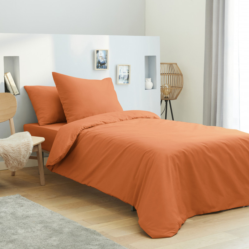 Housse de couette 140 x 200 unie orange 100% Coton / 57 Fils/cm²