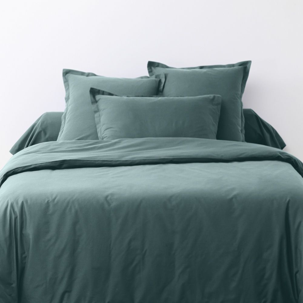 Housse de couette 140x200 cm + 1 taie d'oreiller carrée 100% Coton 57 fils Bleu Canard