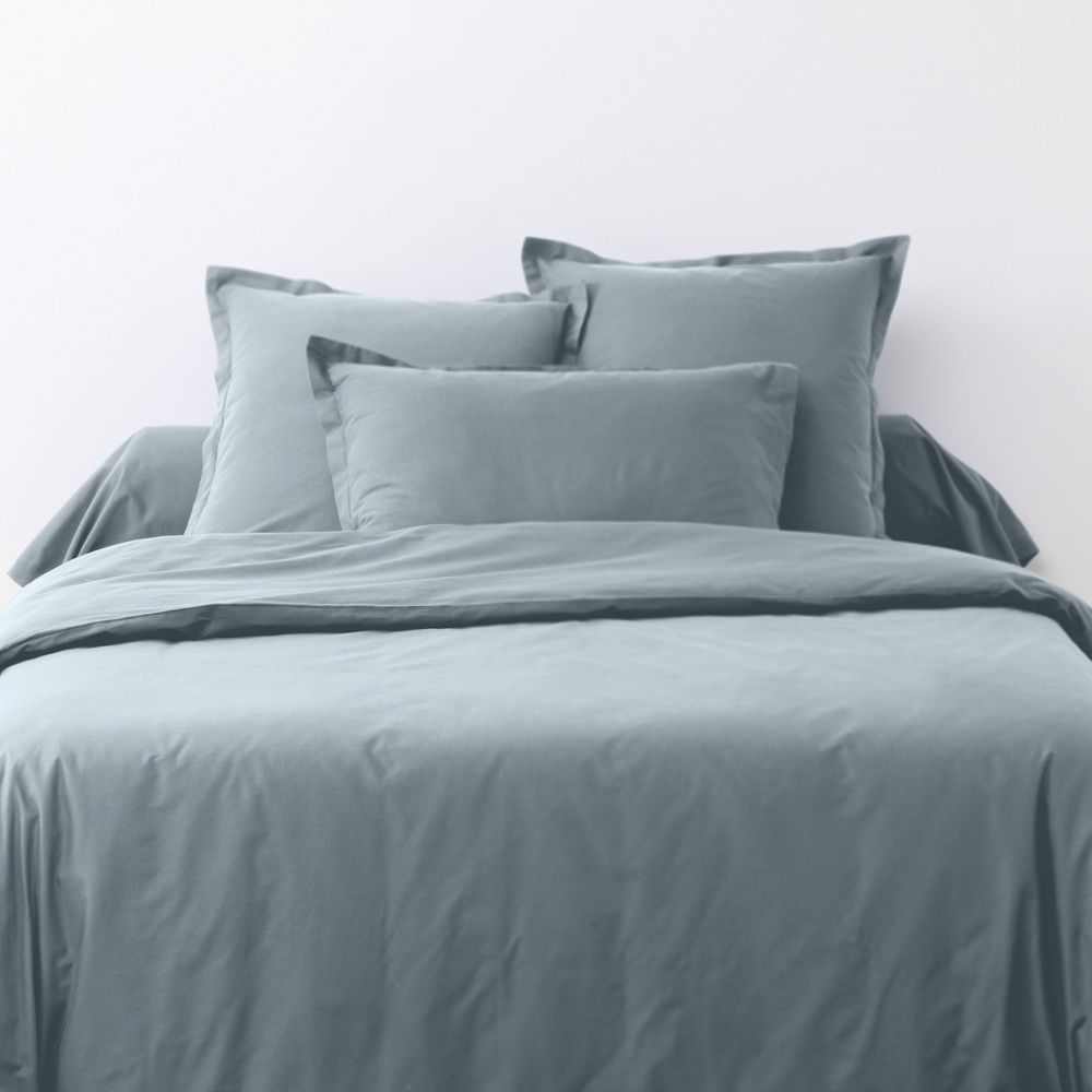 Housse de couette 140x200 cm + 1 taie d'oreiller carrée 100% Coton 57 fils Bleu Polaire