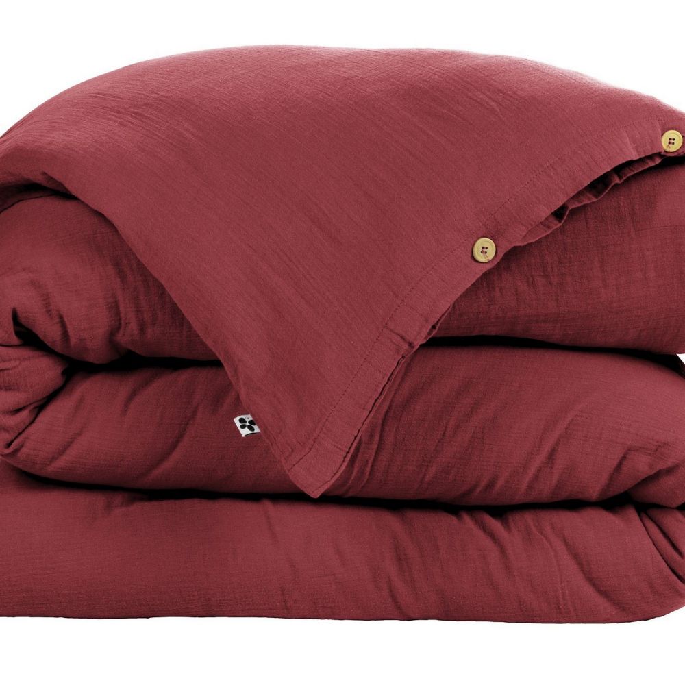 Housse de couette 140x200 Gaze de Coton Lie De Vin