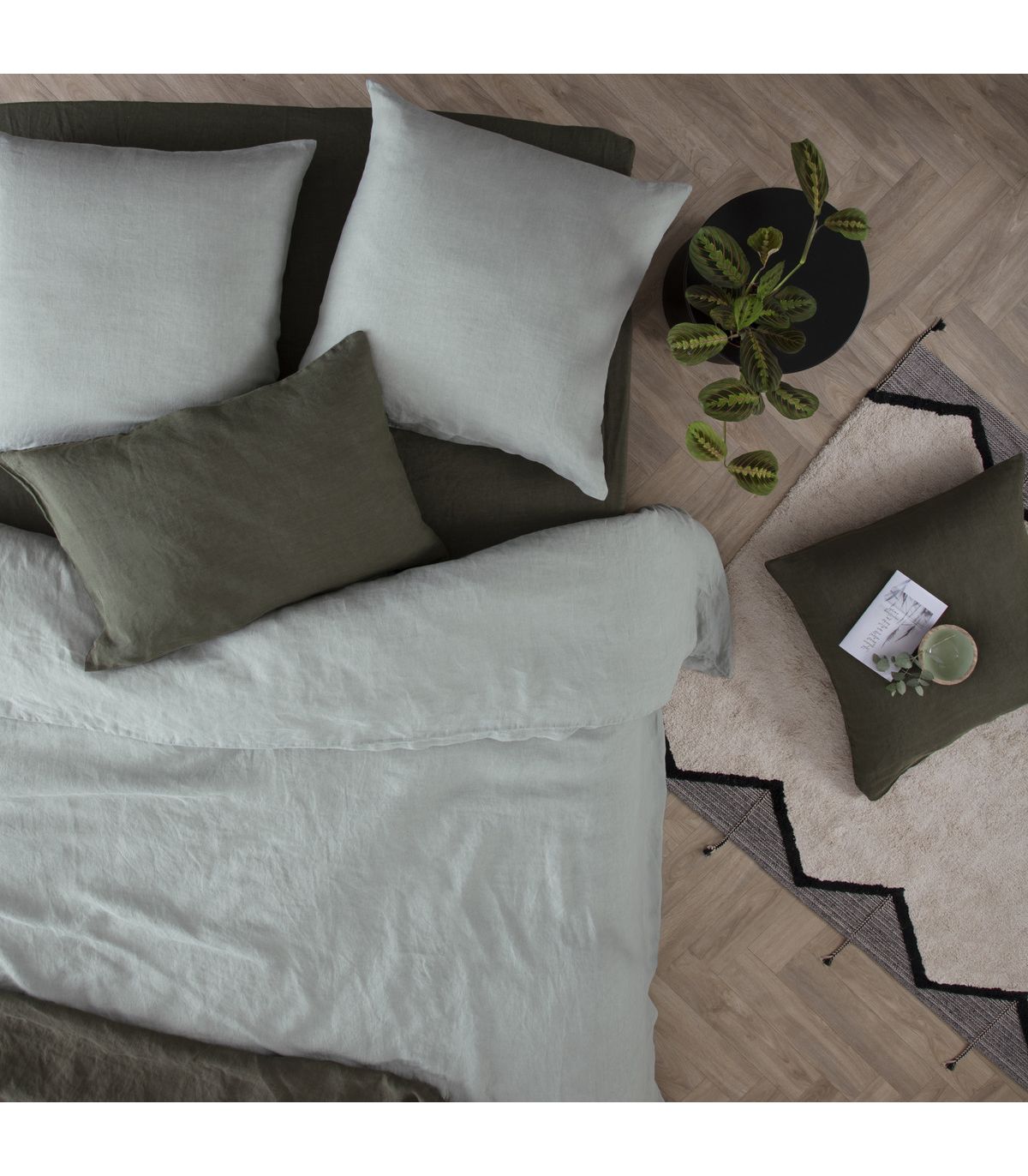 Housse de couette 2 Personnes en Lin lavé Vert céladon 260 x 240 cm