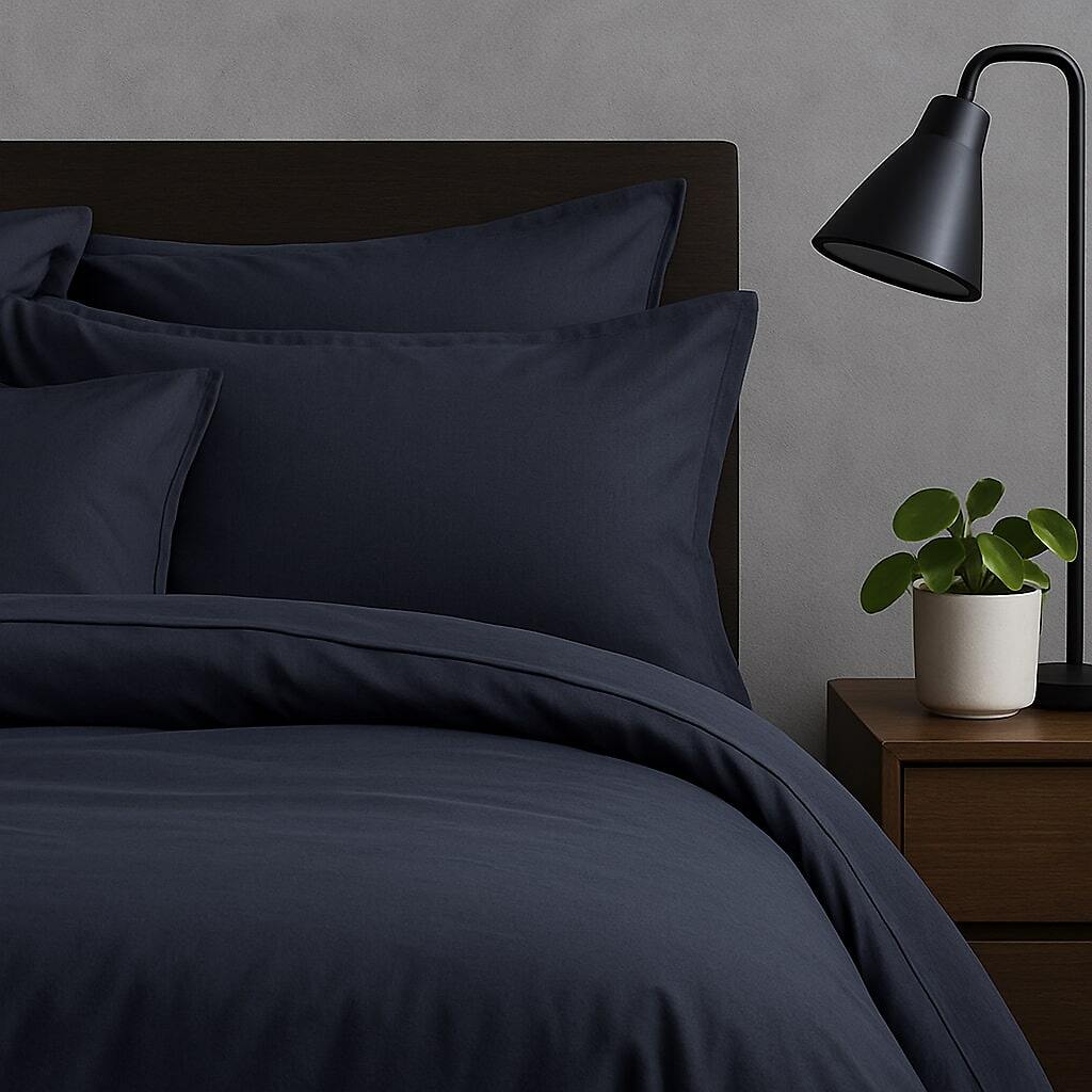 Housse de couette 220x240 + 2 taies d'oreiller 63x63 cm Satin de Coton Indigo