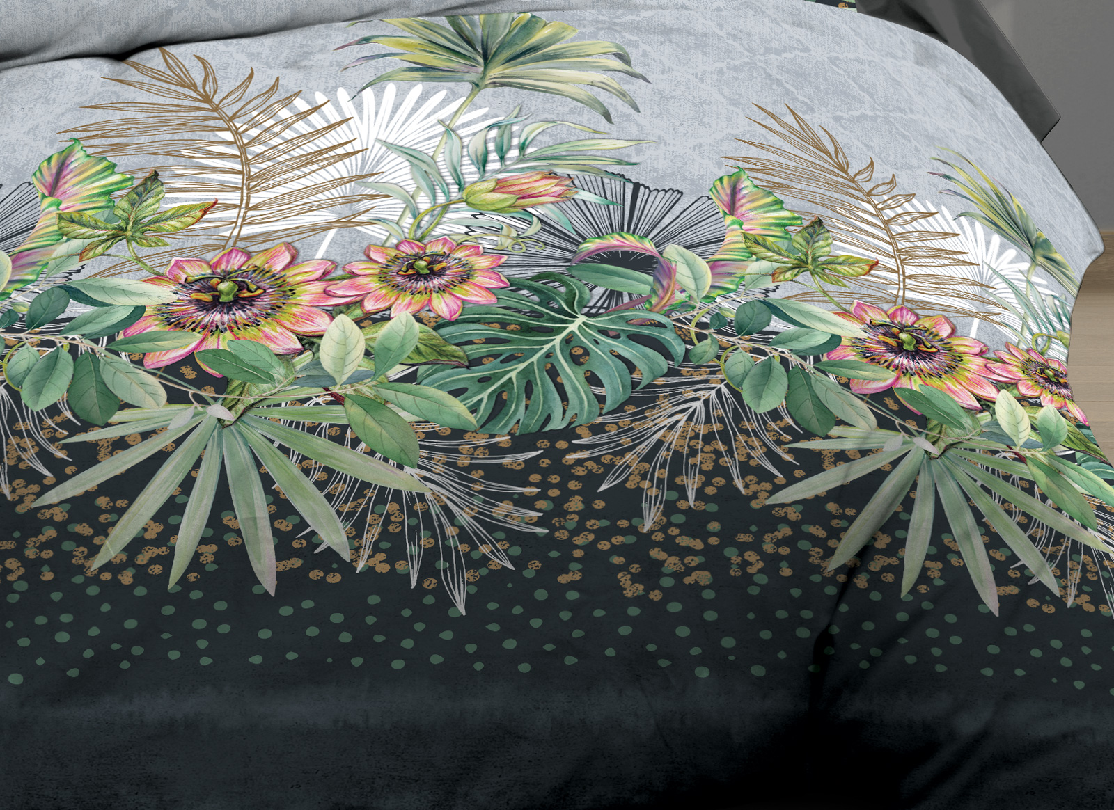 Housse de couette 220x240 + 2 taies - Pur coton 57 fils - Flora