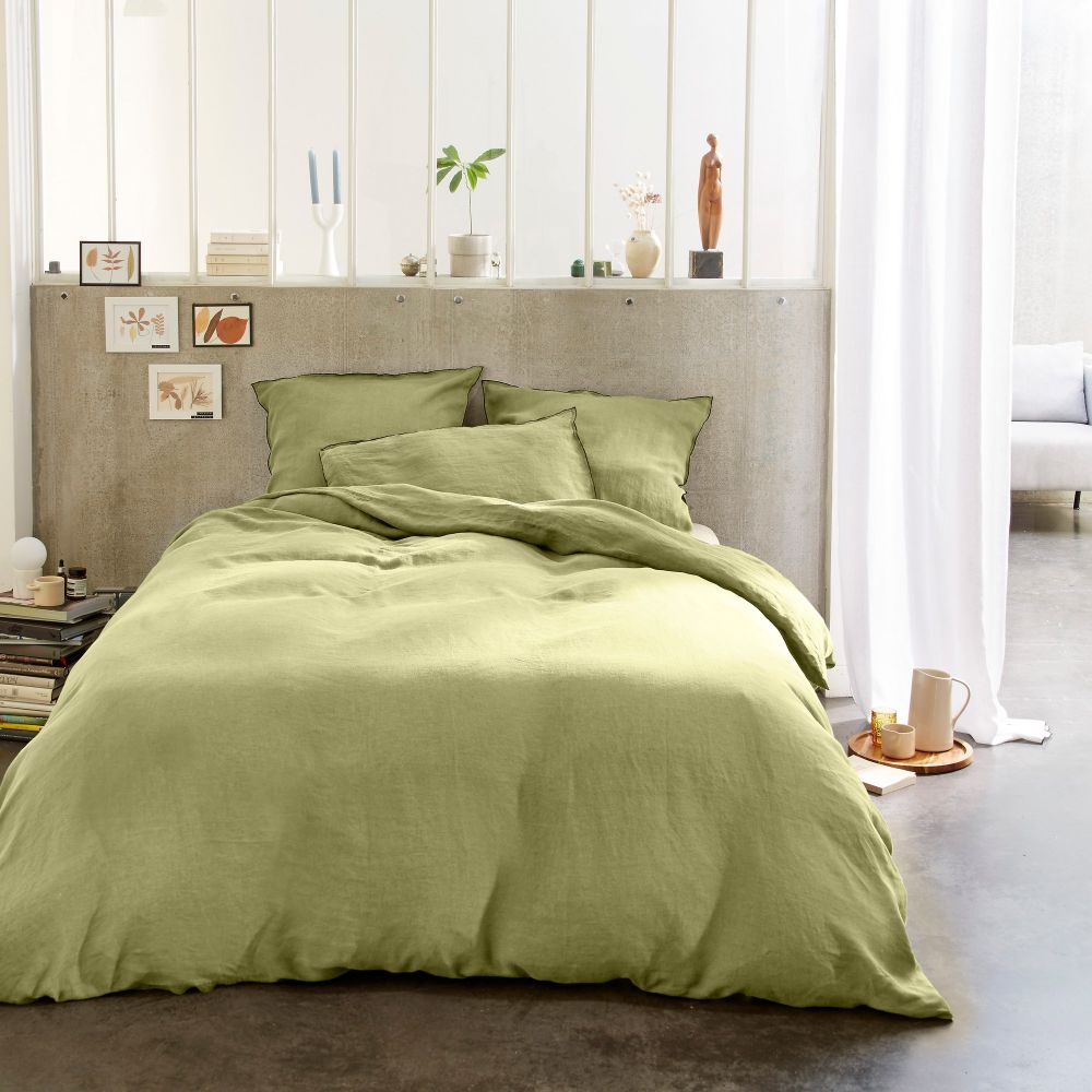 | Plus produit | PARURE DE LIT EN LIN FRANÇAIS : Housse de couette 220x240 cm finition Bouton + 2 taies d'oreiller 65x65 cm |