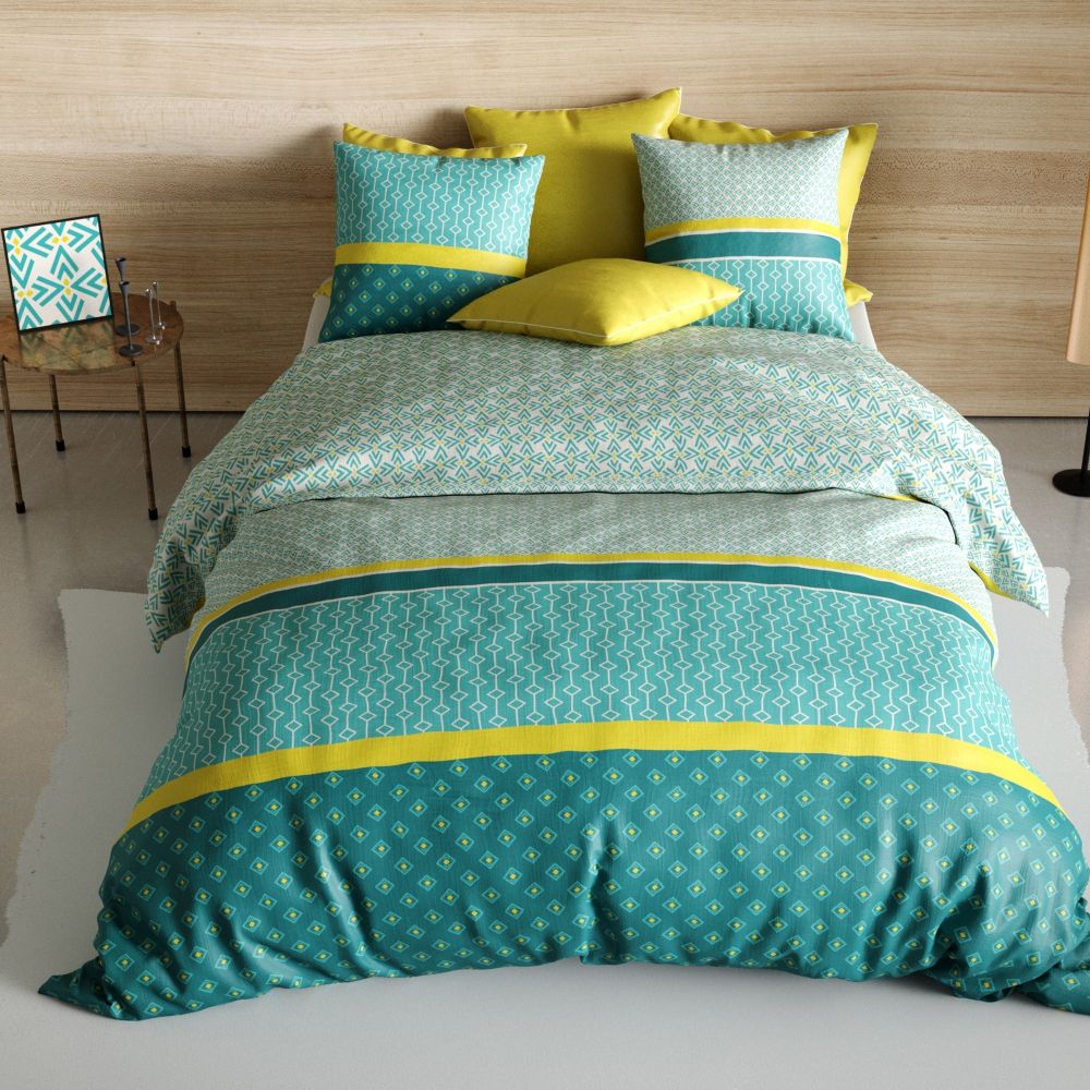 Libellé Housse de couette 220x240 cm + 2 taies d'oreiller carrées 100% Coton 57 fils Malphy