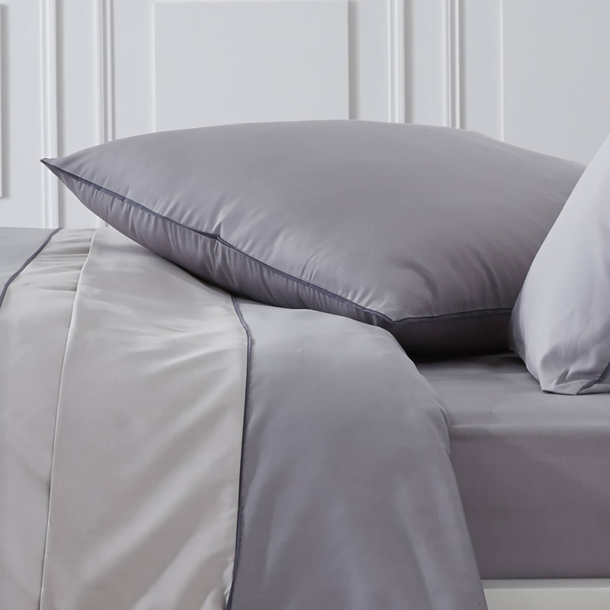 Housse de couette 220x240 cm avec 2 taies d'oreiller 63x63 cm Parure de lit Percale de Coton Sidney Cendr