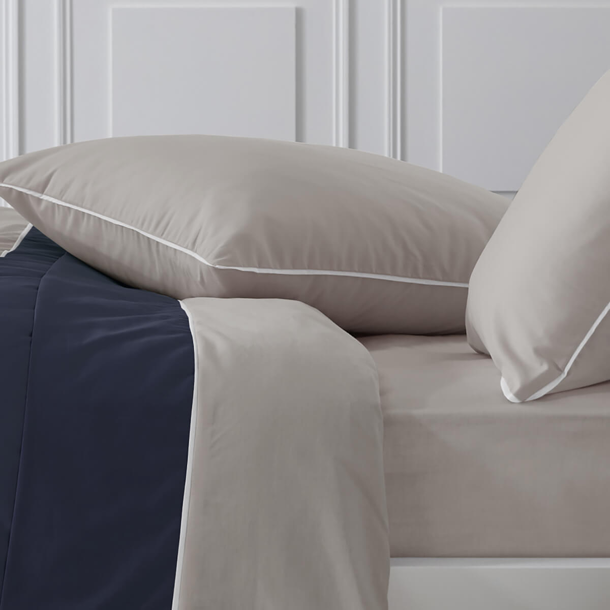 Housse de couette 220x240 cm avec 2 taies d'oreiller 63x63 cm Parure de lit Percale de Coton Sidney Ombre